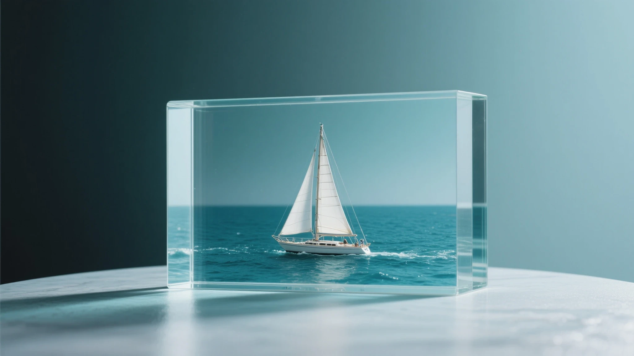 (The camera does not move, dark clouds appear in the glass, the sea water turns into a turbulent flow, and the boat continues to move forward under the heavy rain.)
