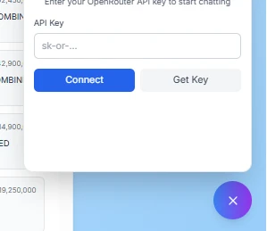 what you can do is click the chatbot button on the bottom then It will give you dialog to enter your API key after you create the api from open router then click connect to the chatbot with unlimited data