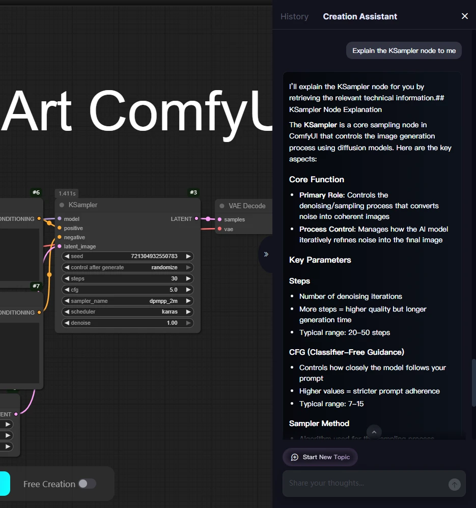 4. Added Creation Assistant, which can explain node functions and provide basic answers about workflows and ComfyUI knowledge.