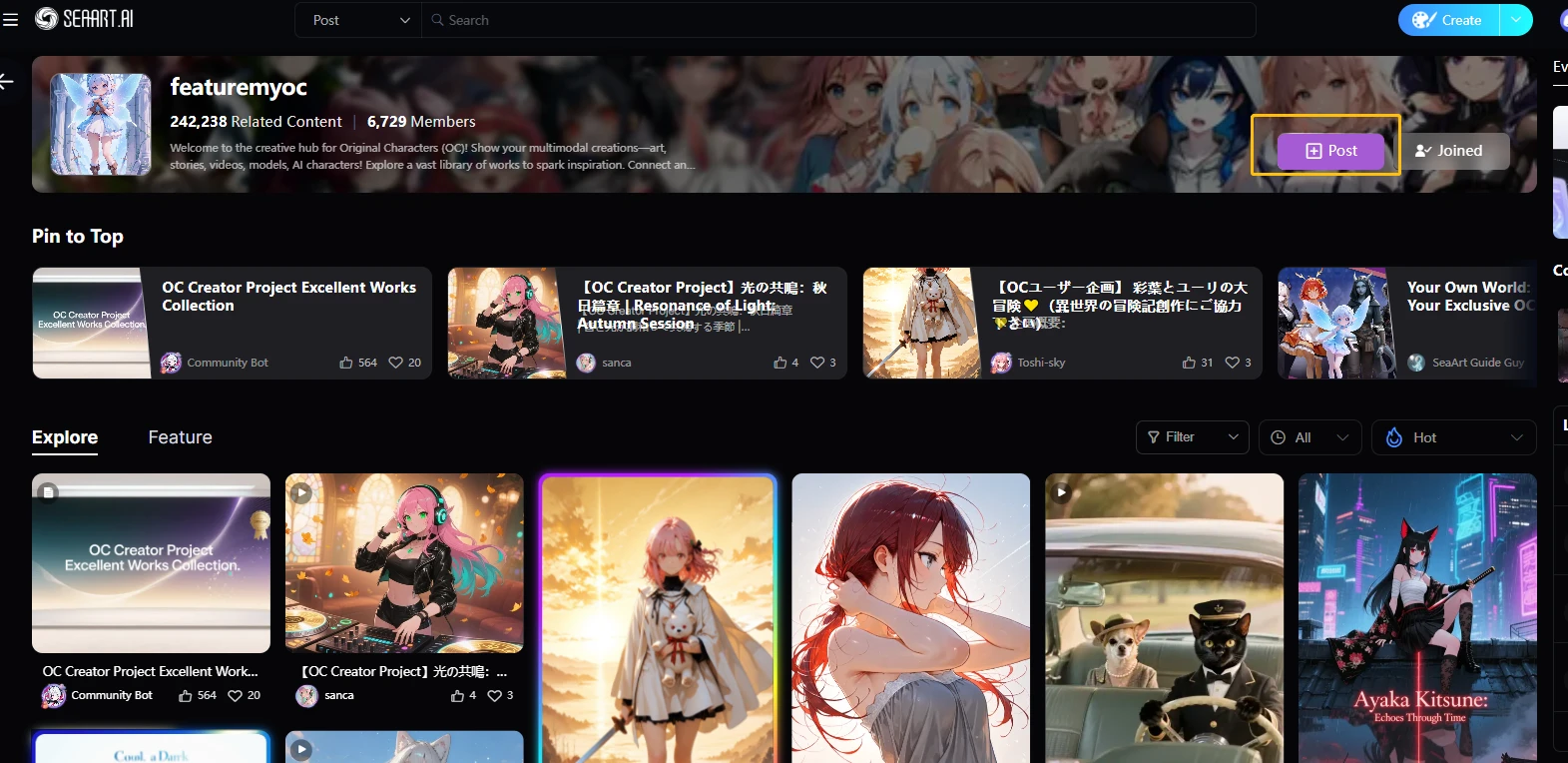 Join creative activities around your favorite community themes â #OC, #Anime, #Realism, #Sci-Fi, and more!