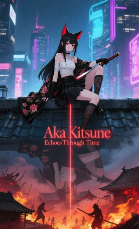 Archive SummaryAkakitsune (Ayaka Kitsune) is a half-fox demon warrior and guardian of the veil between worlds. She carries the weight of two worlds, finding balance across different eras.
