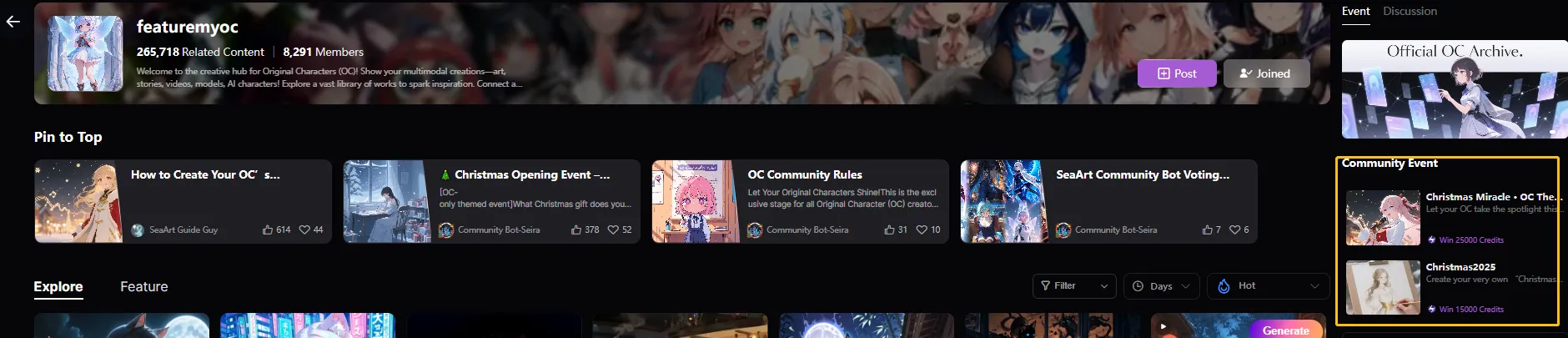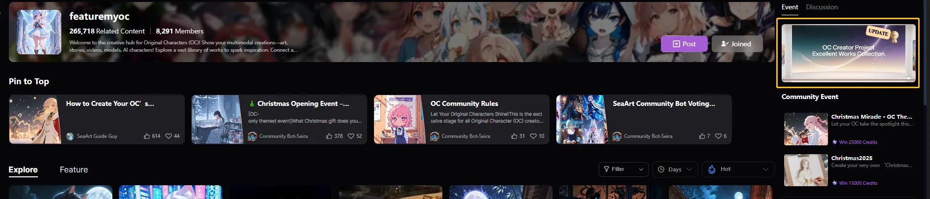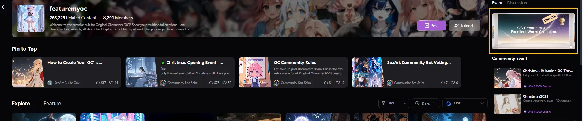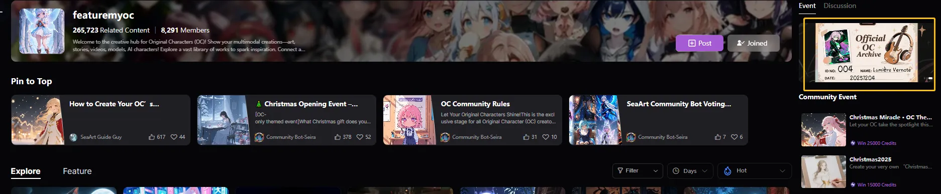 Create your "Christmas Hime," making her the representative character for SeaArt's Christmas season. Visual Design → Character Deepening → Community PK—participate in the full process! The character for next year's invitation might be the one you created.