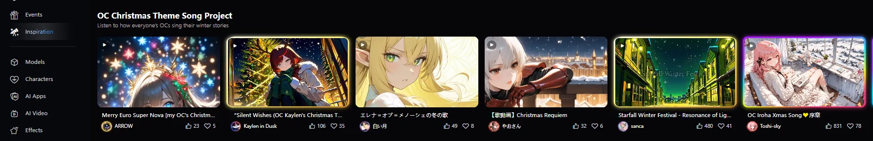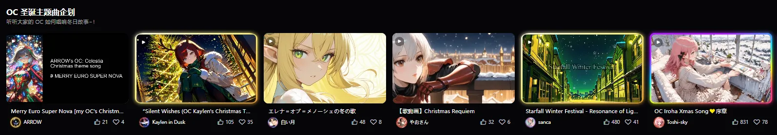 Listen to how everyone's OCs are "singing the winter story." Music, lyrics, PVs, and narrative videos are all welcome! High-quality works will be featured on the Inspiration Page, gaining more exposure.