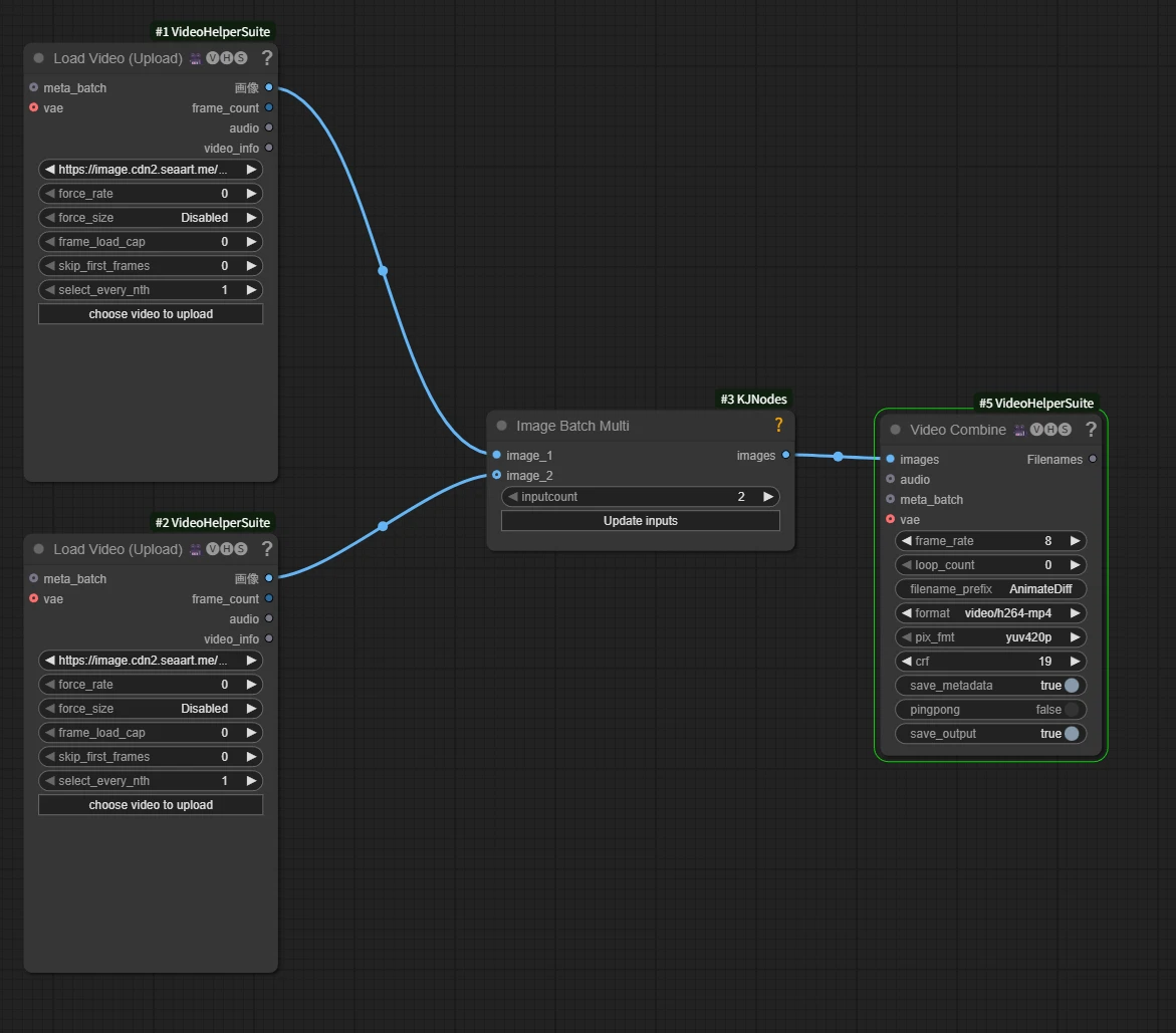 [ inputcount ] を変更して [ Update Inputs ] を押すことで3つ以上の動画も接続できるようになります。