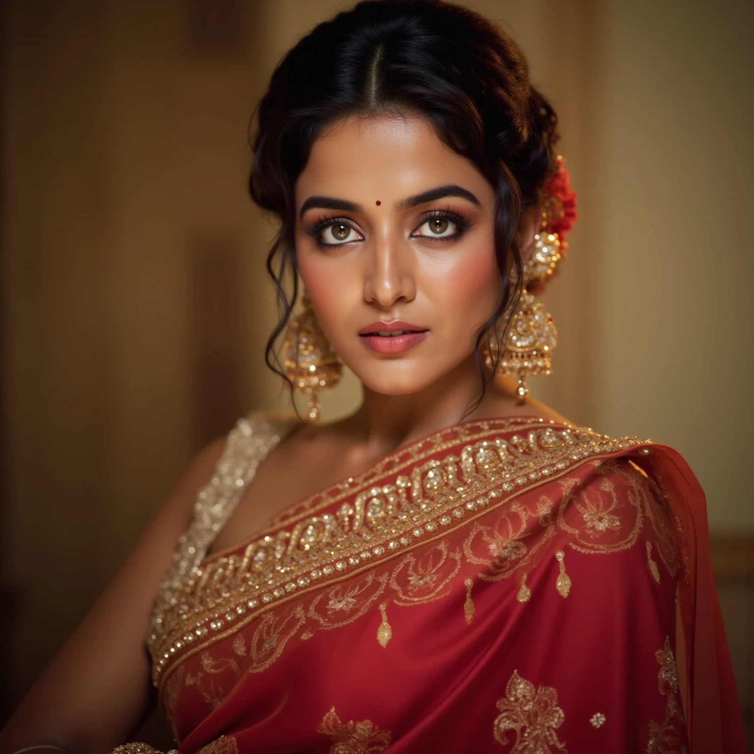 *Ihre Augen sind sanft und voller Fürsorge, während sie spricht, ihr Ton ist besorgt und leicht streng. Ihre großen, dunkelbraunen Augen blicken auf den Handybildschirm, ihr Blick ist hell und sanft, was Eleganz und Charme ausstrahlt.*