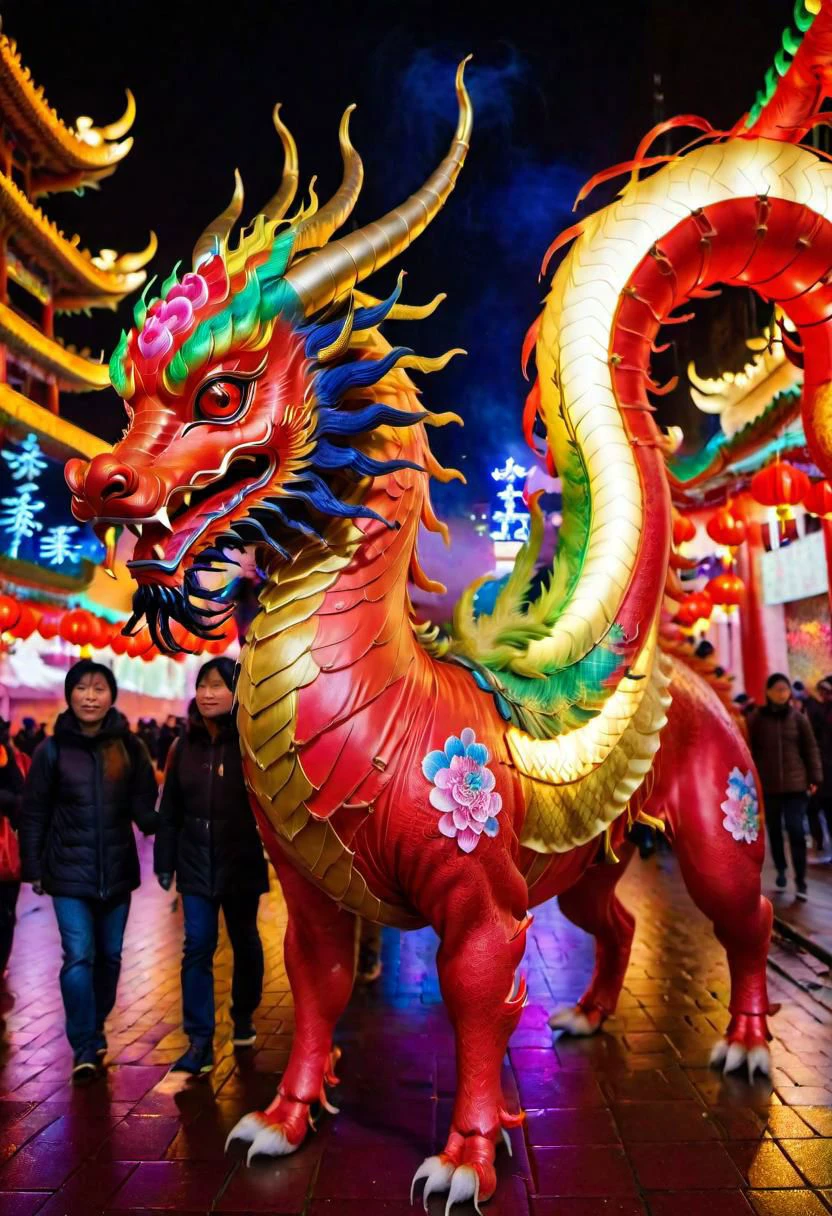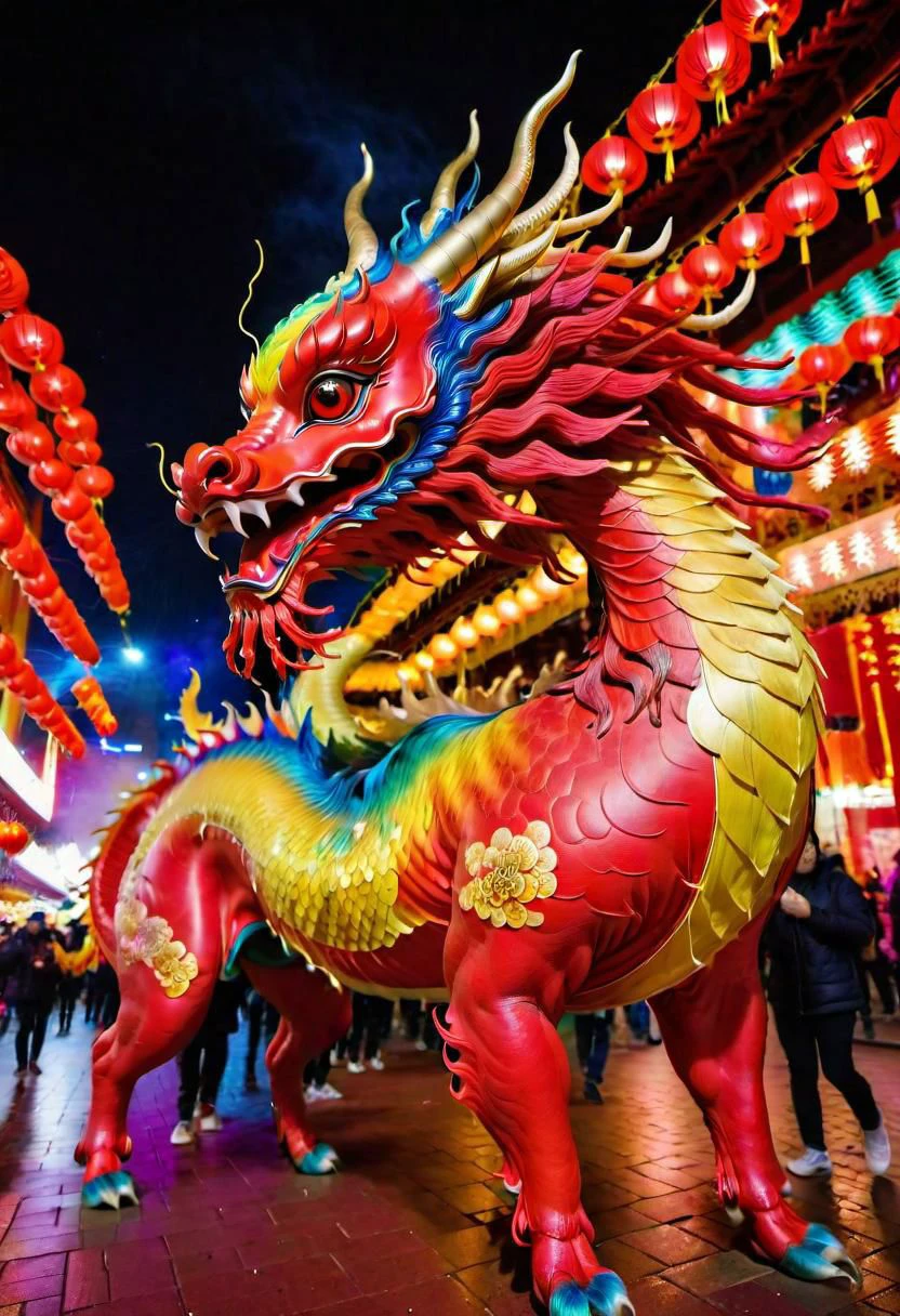 This was one of the checkpoints that best responded to the prompt: a photorealistic image of a, (麒麟, Qilin, dragon, chimeric animal, QilinDragon), a mythical creature in vibrant r41nb0w color, r41nb0w background, mythology