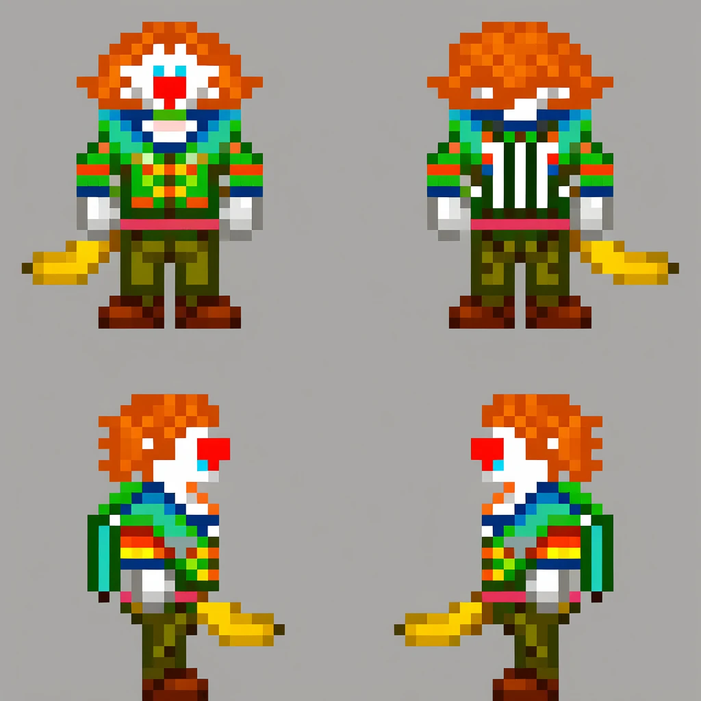 The goal of this model is to allow you to create customizable human(-oid) sprites on a clean background for easy processing into 32x32 assets.