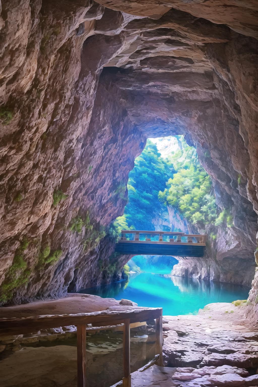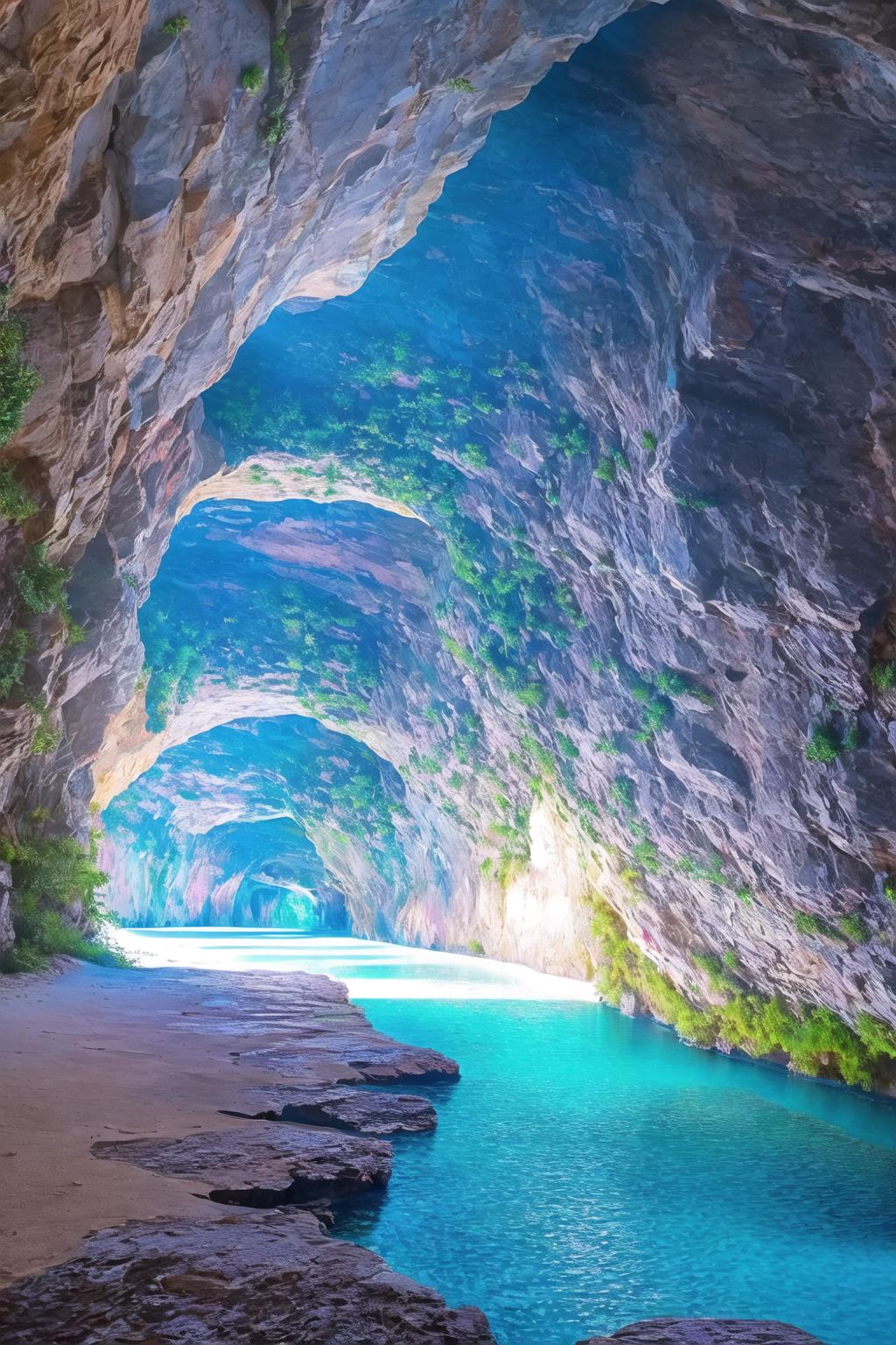 Trained on 55 images of real and anime caves, with a mixture of underground water sources as well.