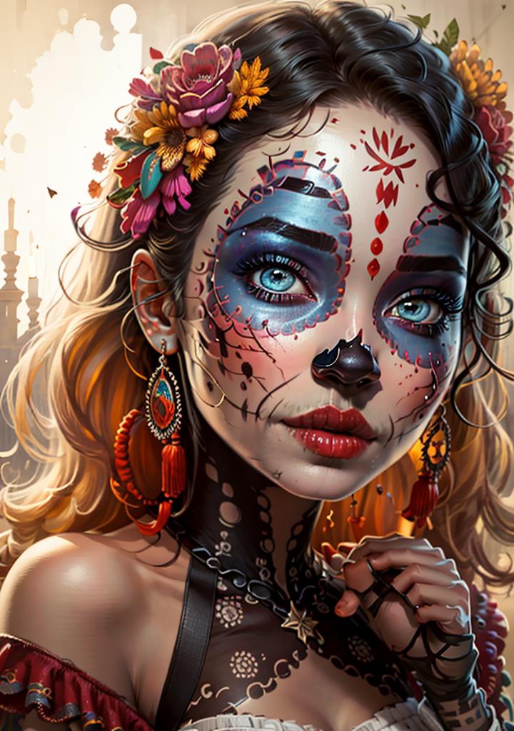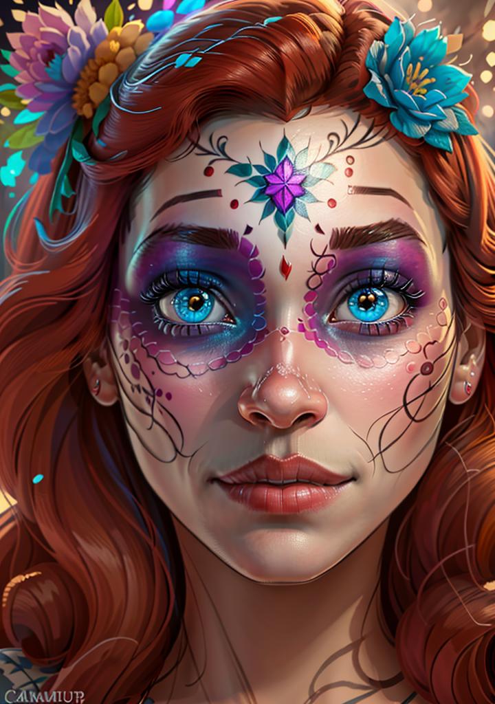 “It’s the first time I’ve made a Concept and I’m very satisfied with the final result. I think this particular model is very entertaining and may be interesting for some people. Basically it’s the popular makeup (catrina) of the Mexican tradition of the Day of the Dead. It can be used to paint your favorite characters or simply to generate concepts and charming girls in any type of model. The Lora works with a force of (1.0 - 0.5) so it is quite flexible. Use the words (CatrinaMakeUp) to invoke the Lora and obtain greater precision, it can also help to put (Makeup by CatrinaMakeUp). Remember to leave your review and an image, I love to see what you can do with the models!! have fun.”