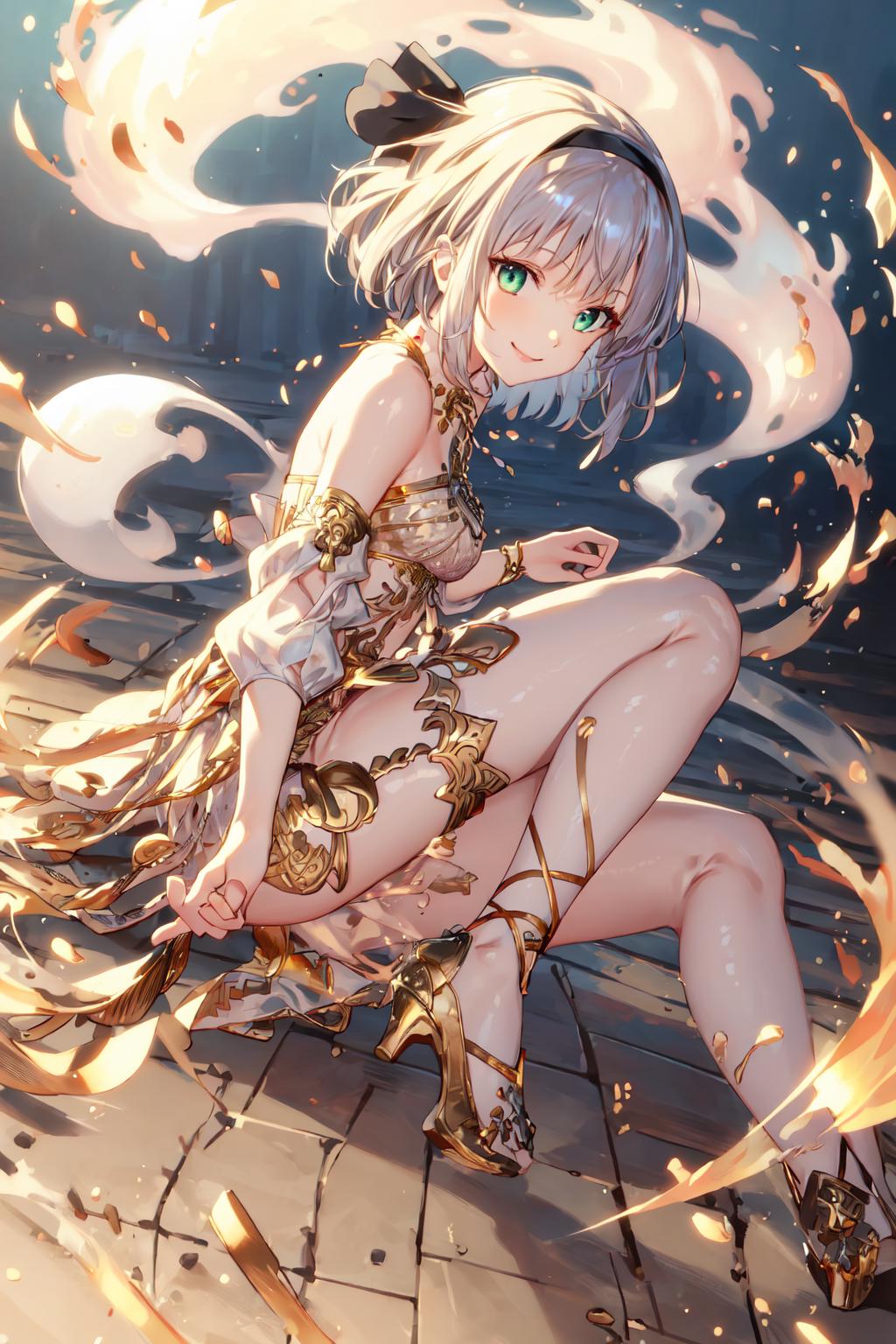 prompt : dancer, bandeau, pelvic curtain, detached sleeves,halterneck necklace,cross-laced,