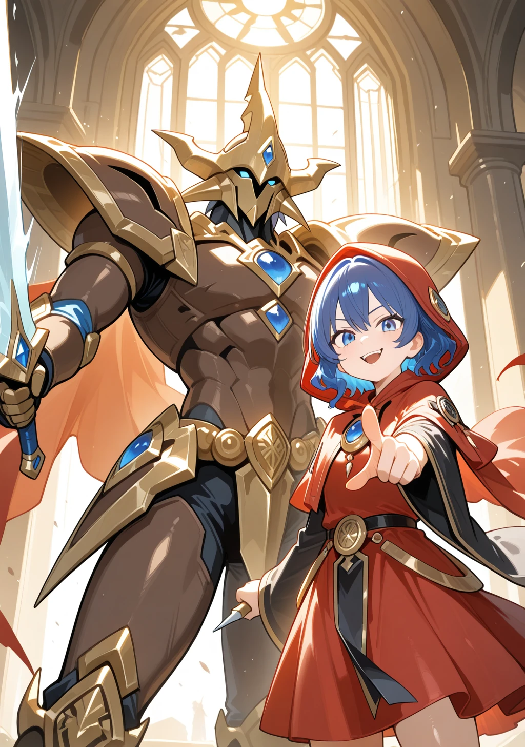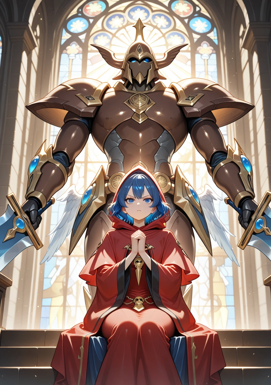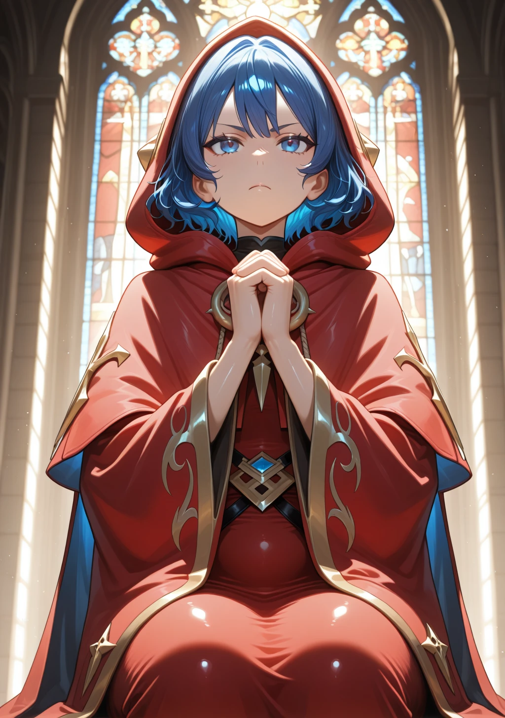 "hood,wide sleeves, red dress, long sleeves, cloak"