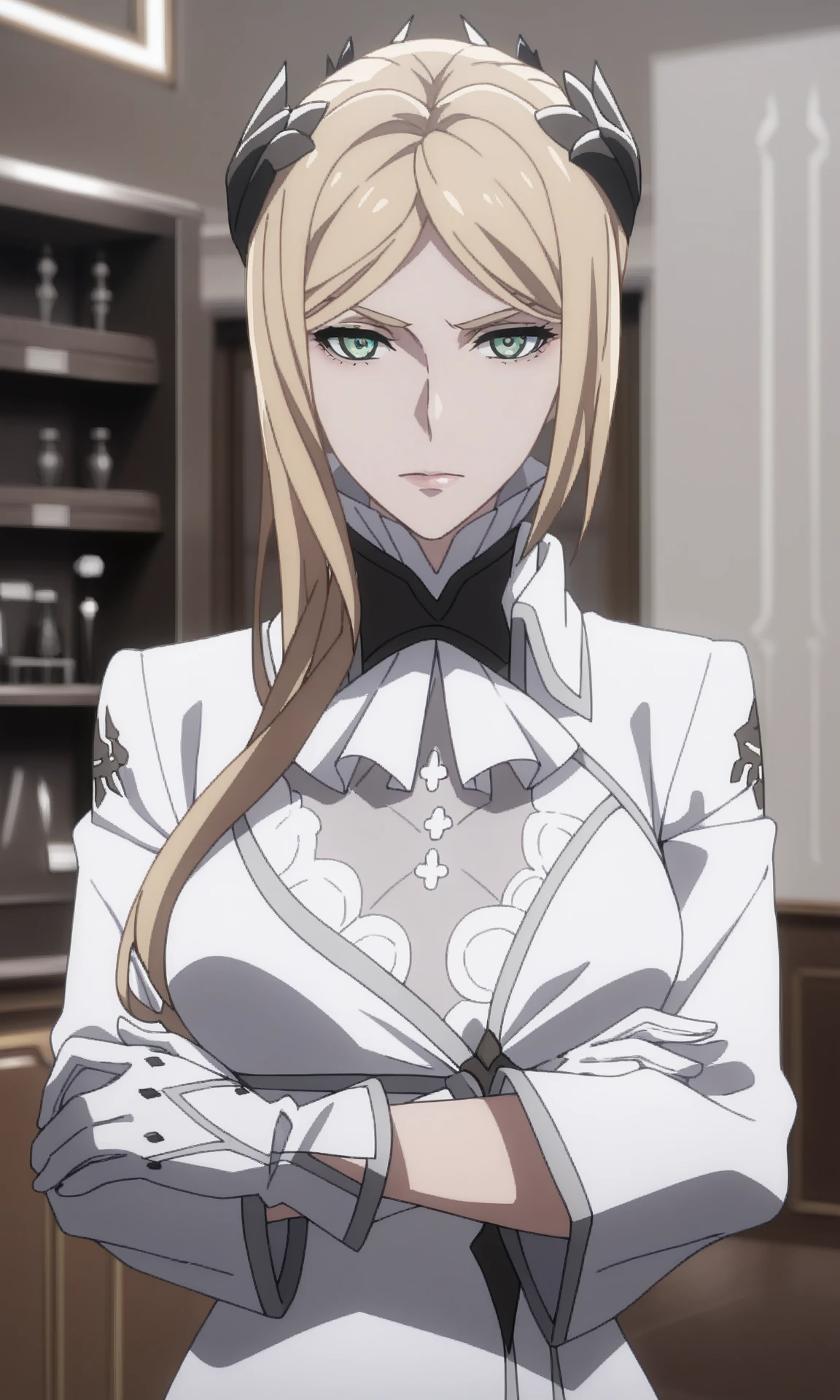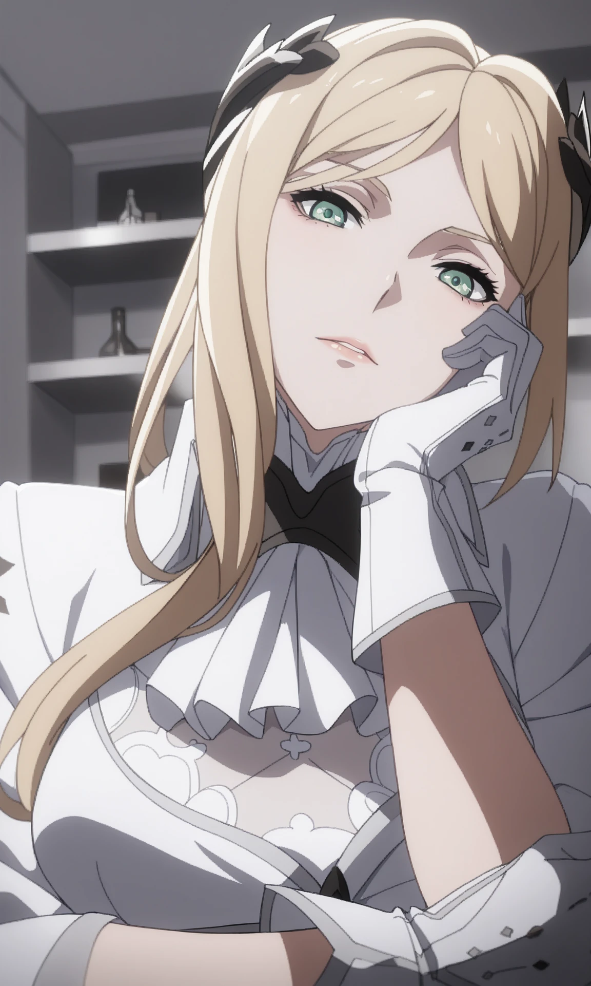 If you get bleeding from the default outfit - add "white dress, high collar, white gloves, ascot" to negative and lower LORA weight.