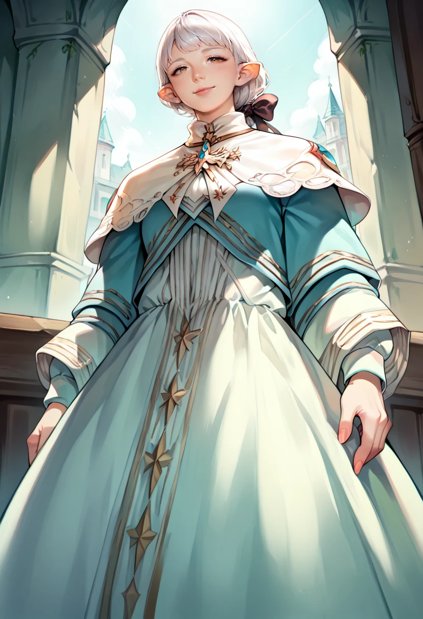 ameliance,mature female,bow,white hair,brown eyes,bangs