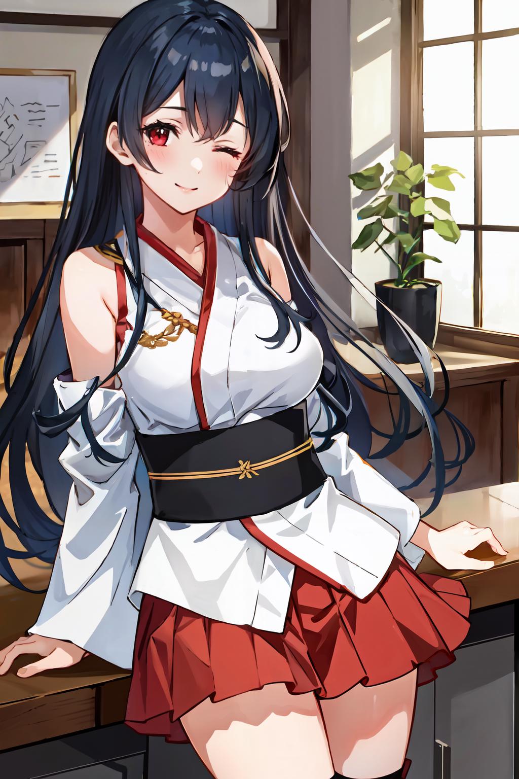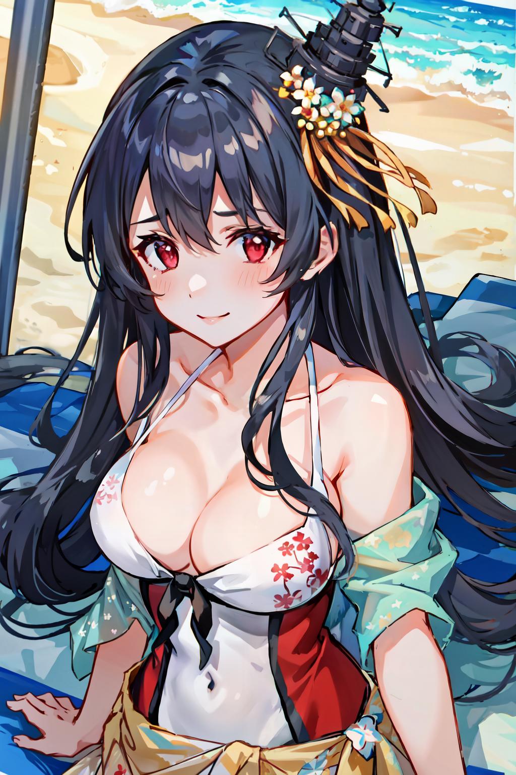 I always skip Step 0, 2 :PFusouKC , (FusouKC) japanese clothes, (red) hakama short skirt, (white) socks, tabiFusouBikiniKC, (one-piece) swimsuit, sandals