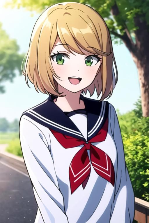 magahara_desumi, green eyes, blonde hair, short hairFollow me on Twitter(X): @TakagiChikita