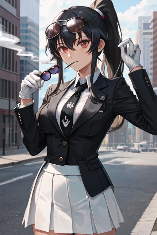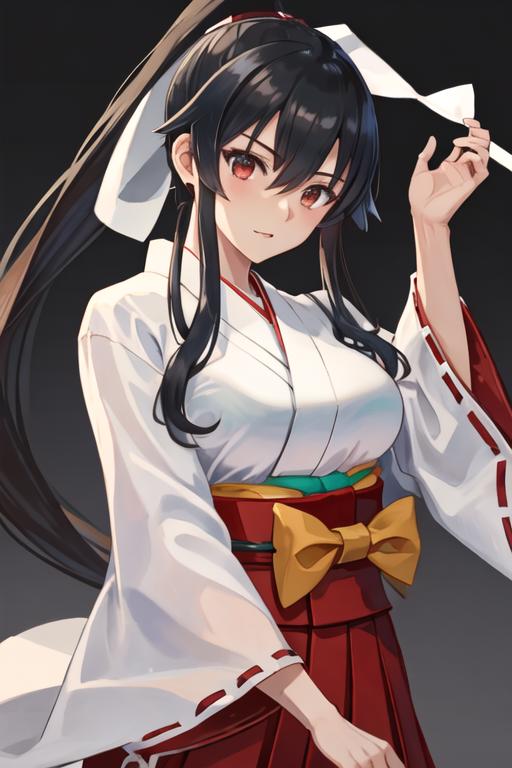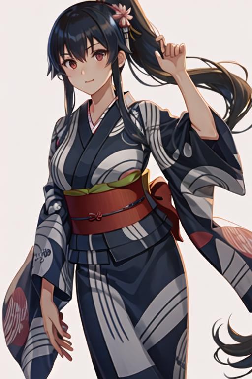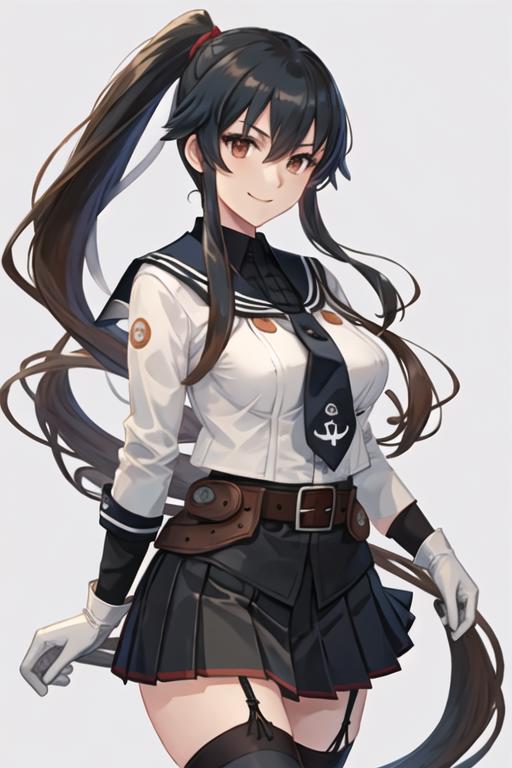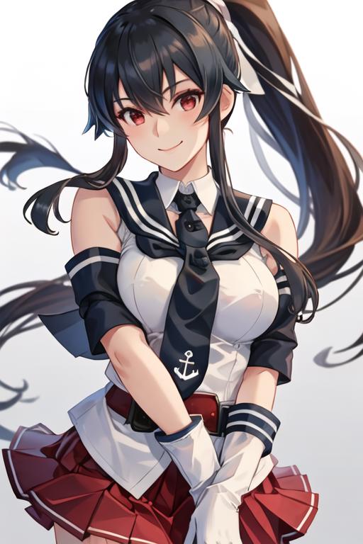 The trigger word is yahagi_kantaicollection, and the recommended tags are best quality, masterpiece, highres, solo, {yahagi_kantaicollection:1.15}, long_hair, black_hair, ponytail, red_eyes, sidelocks, ???????, hair_between_eyes, large_breasts.