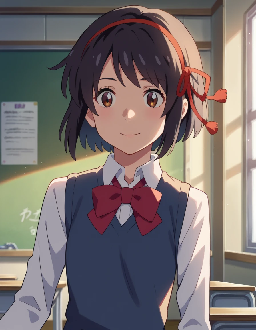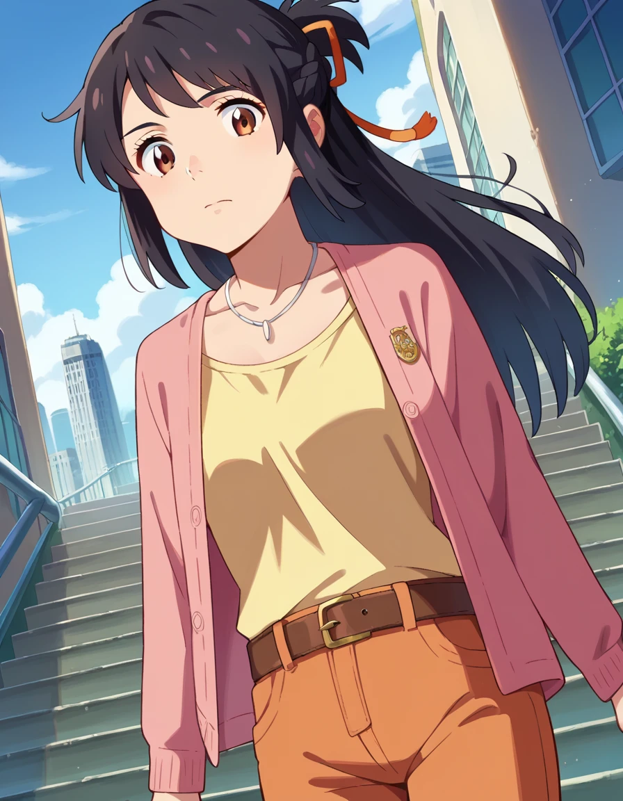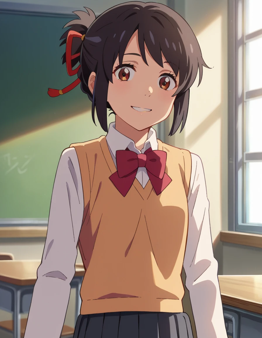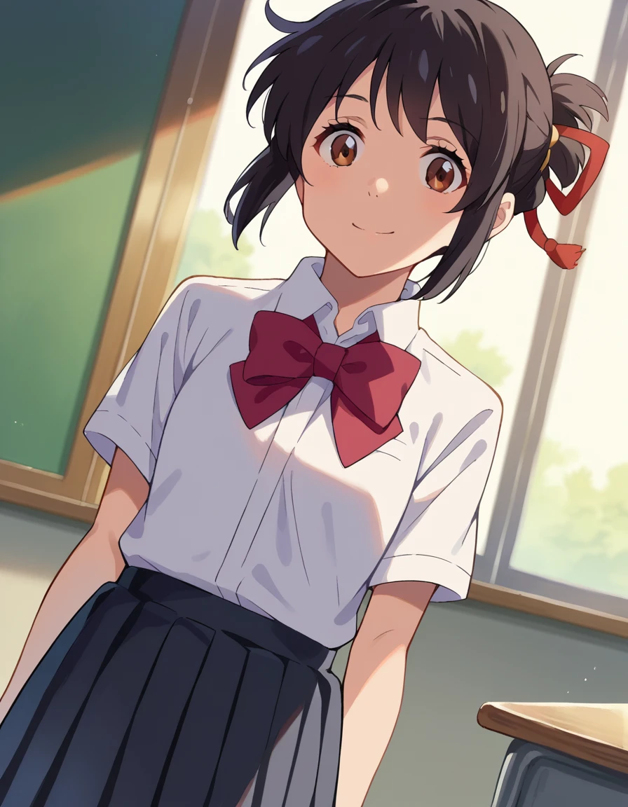 mitsuha miyamizu, black hair, brown eyes,