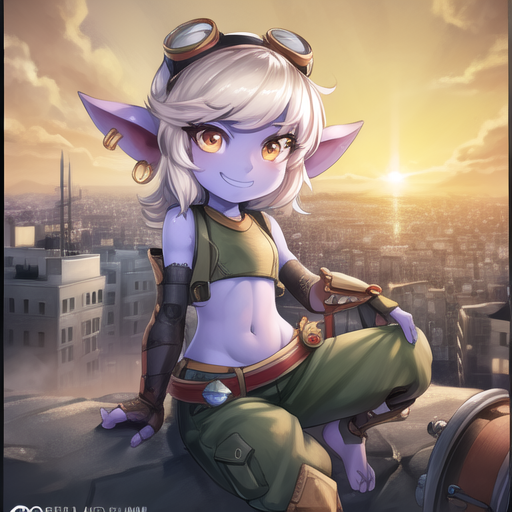 This is the first Lora I have made. Works best between 0.6-0.8. can do ???? and sfw consistently. It should be able to generate her gun with (Tristana Boomer Gun), but it doesn't work most of the time. Works better at higher than 512x512 resolutions. Images generated on AOM3, and Grapefruit, other models should work fine.