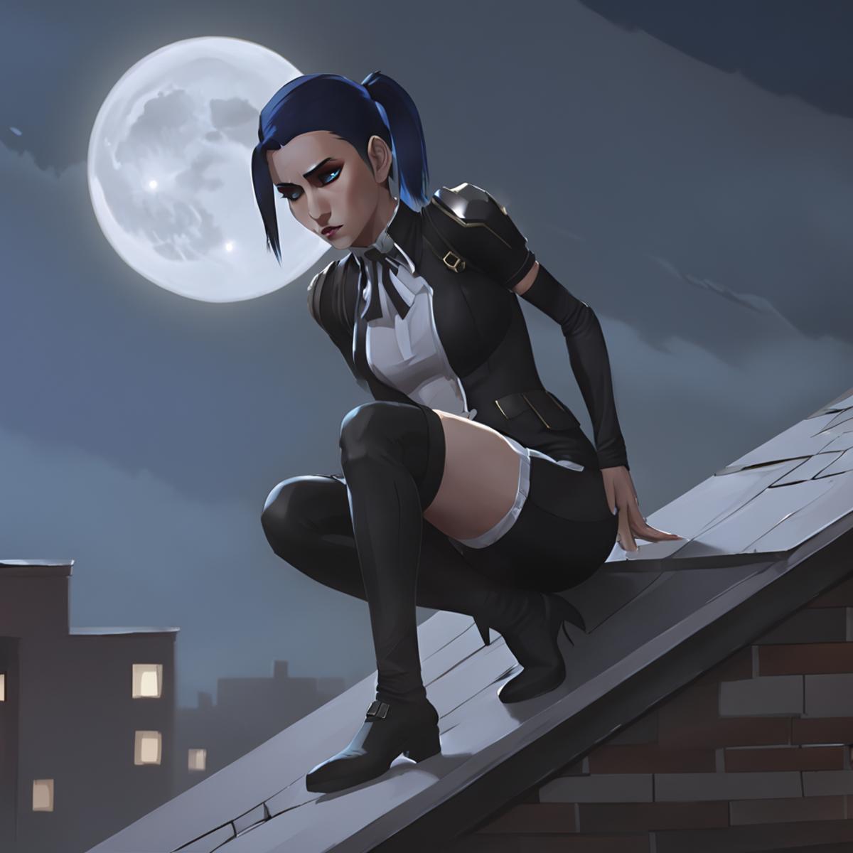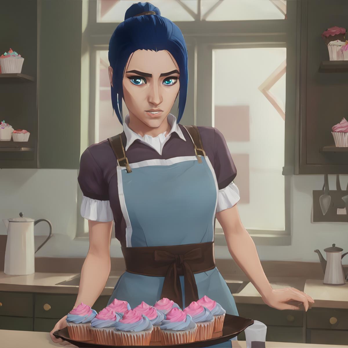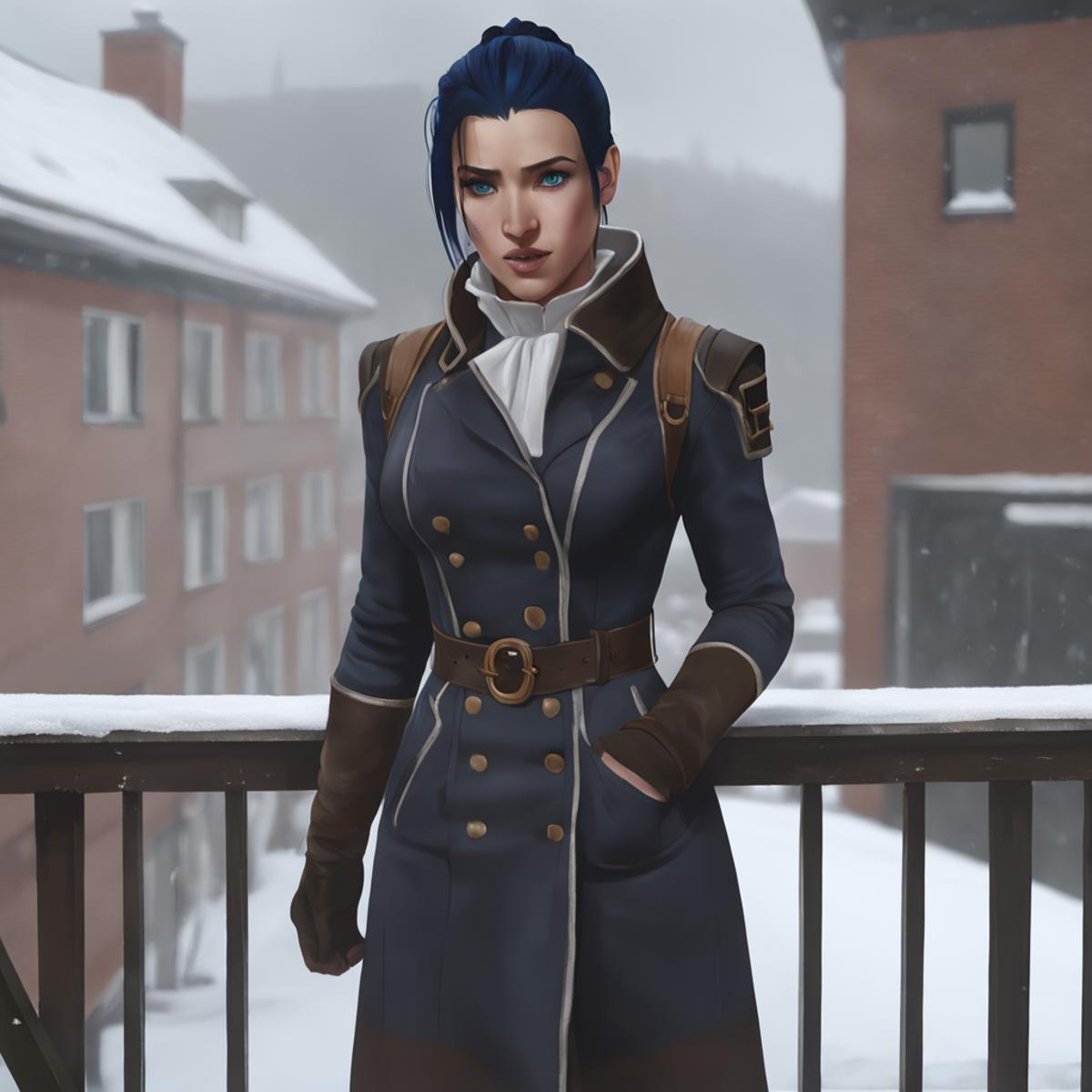 Results are best between 0.7 and 0.9. Keywords are "arcane, caitlyn, blue hair, blue eyes, solo". I used a few outfits in her training data, so you can provide it with keywords such as "casual clothes", "enforcer uniform", or "hood, hood up" to imitate those outfits. If you want her to wear something else, you can put those in the negatives.