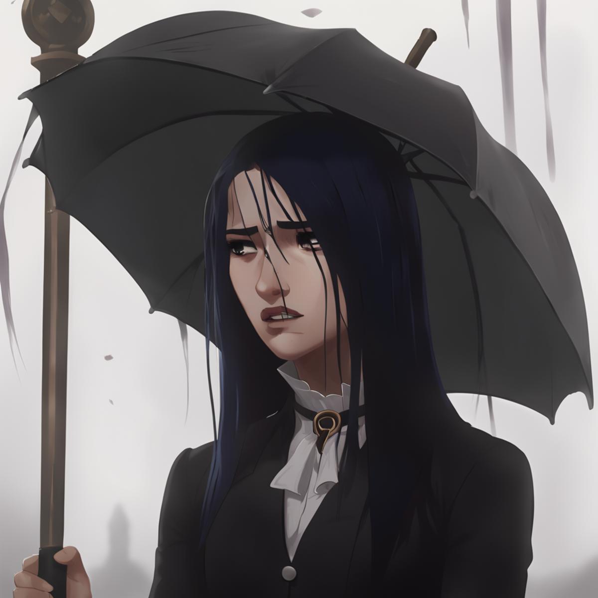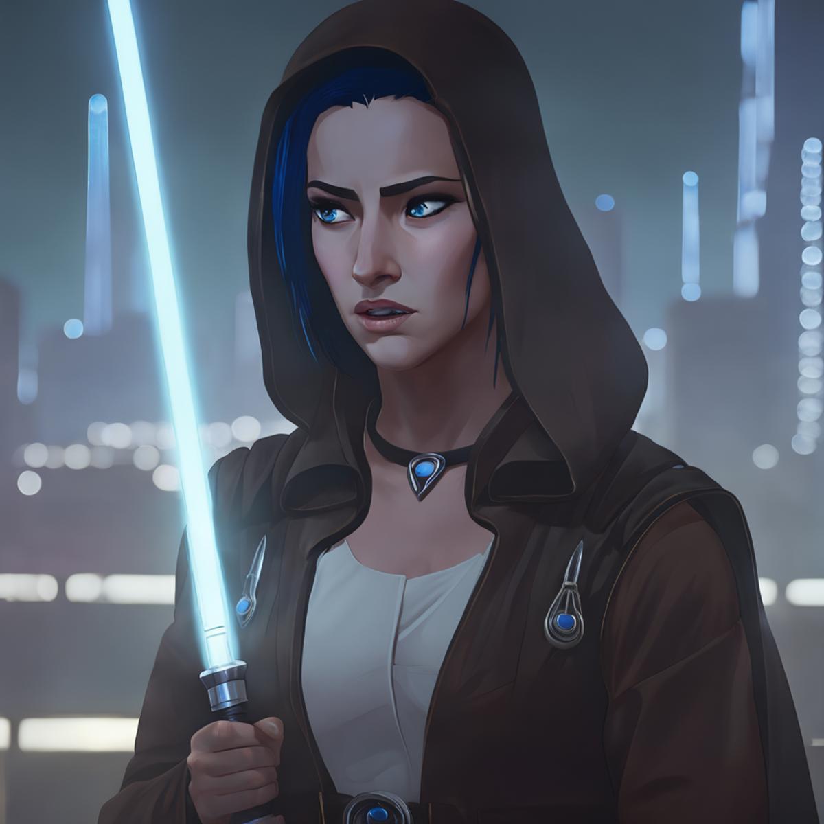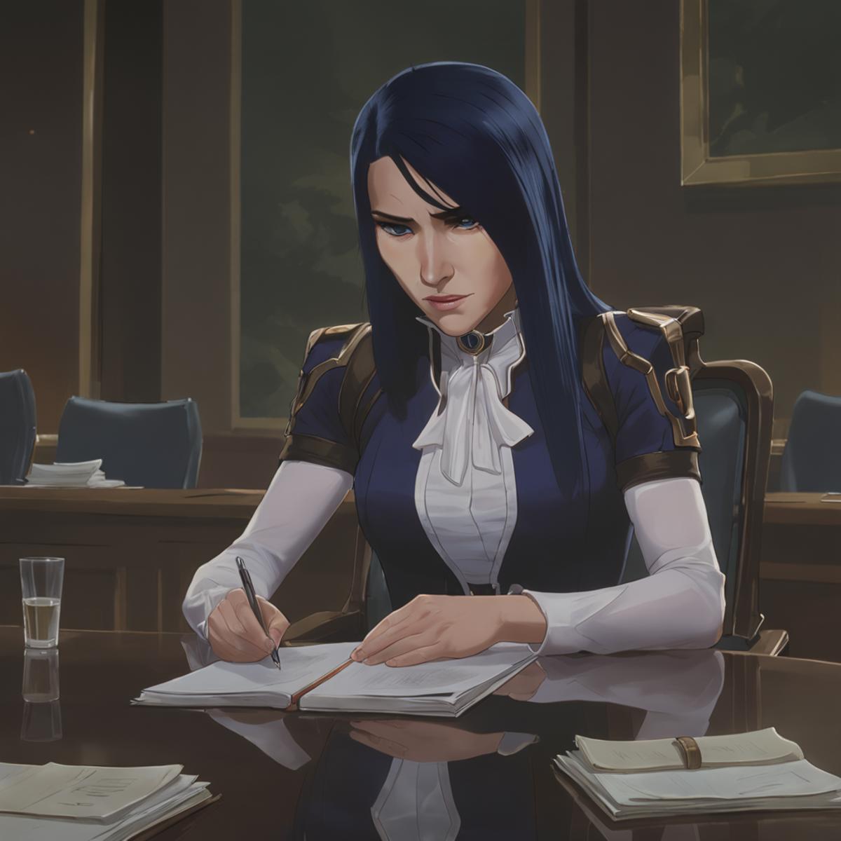 Results are best between 0.7 and 0.9. Keywords are "arcane, caitlyn, blue hair, blue eyes, solo". I used a few outfits in her training data, so you can provide it with keywords such as "casual clothes", "enforcer uniform", or "hood, hood up" to imitate those outfits. If you want her to wear something else, you can put those in the negatives.
