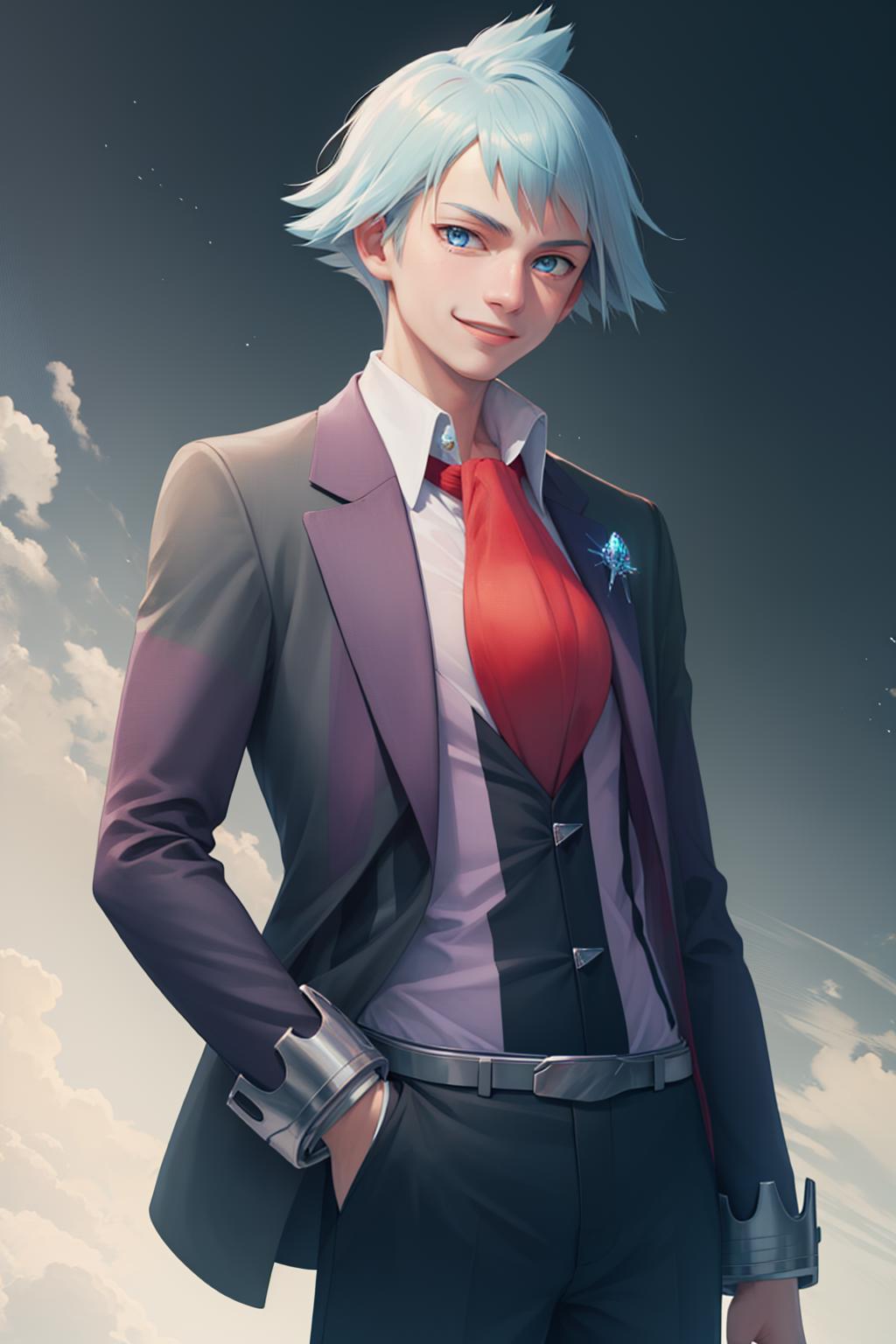 Default Outfit: jacket, collared shirt, necktie, long sleeves, pants, jewelry, ring
