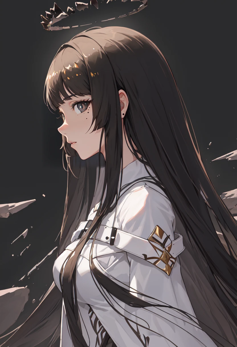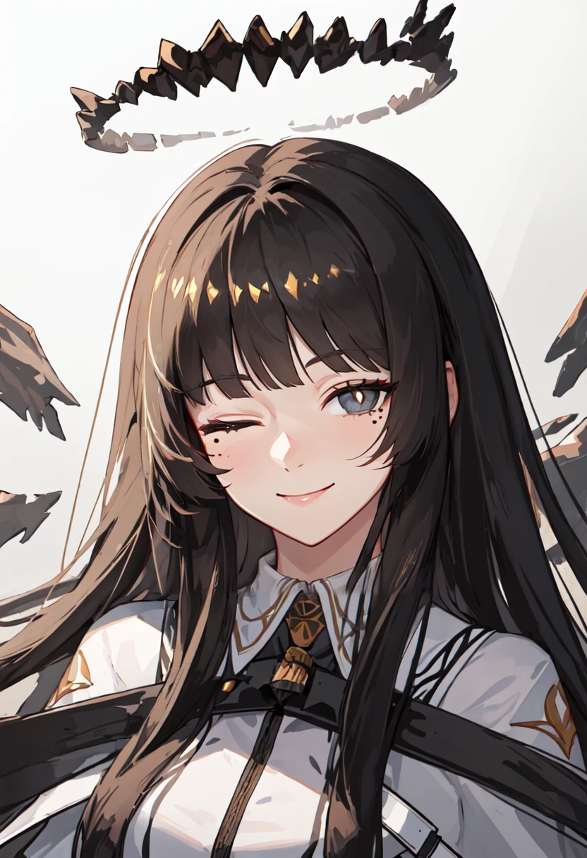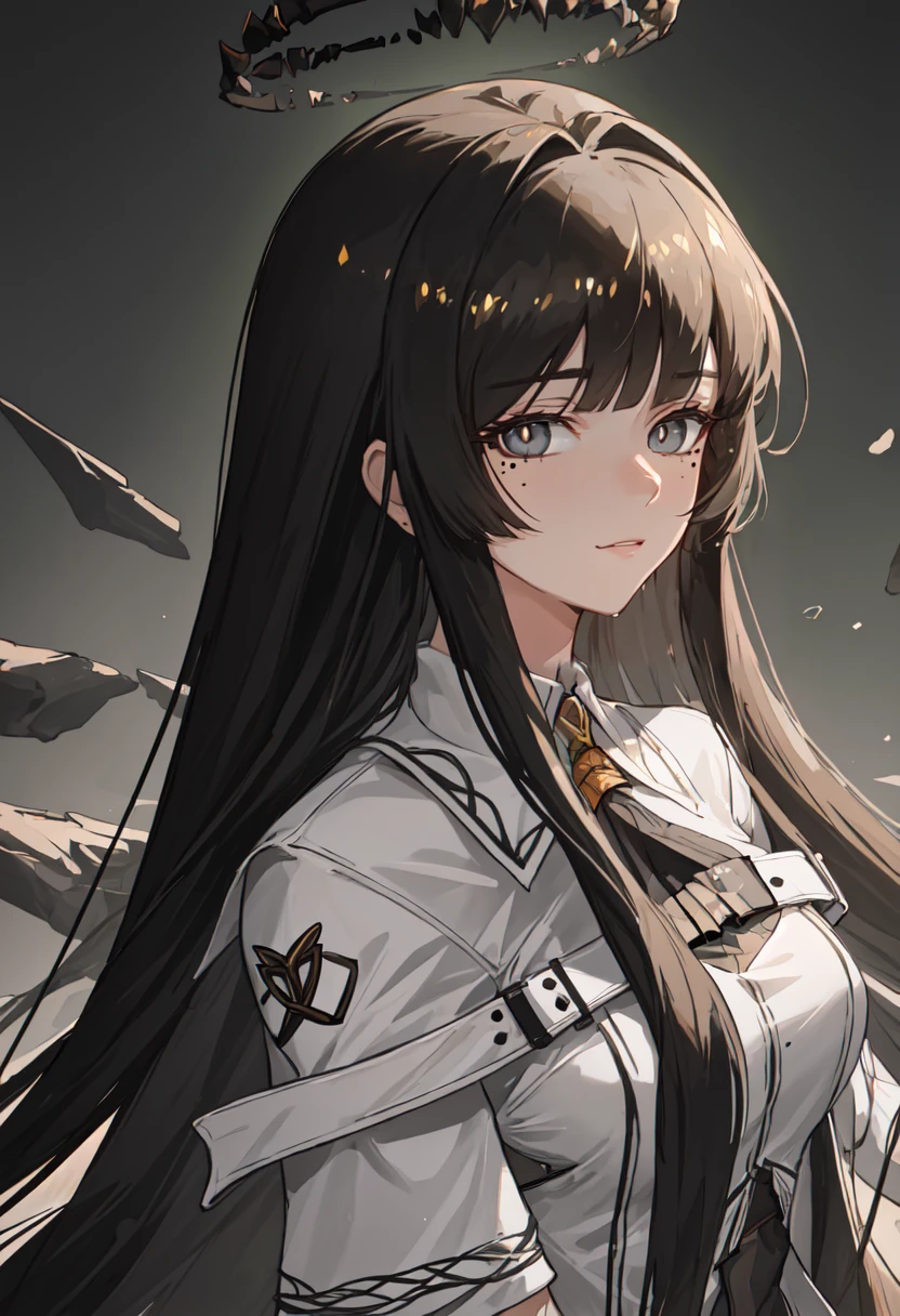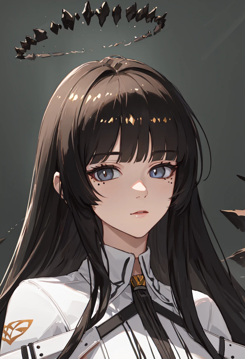 The trigger word is virtuosa_arknights, and the pruned tags are black_hair, long_hair, blunt_bangs, mole, mole_under_eye, straight_hair, halo, sidelocks, black_halo, dark_halo, broken_halo, hime_cut, very_long_hair, black_wings, wings, energy_wings, detached_wings, pale_skin, black_eyes, ???????, colored_inner_hair, two-tone_hair, multicolored_hair, eyelashes, white_pupils, bright_pupils, grey_hair, ??????????????, floating_hair, ahoge.