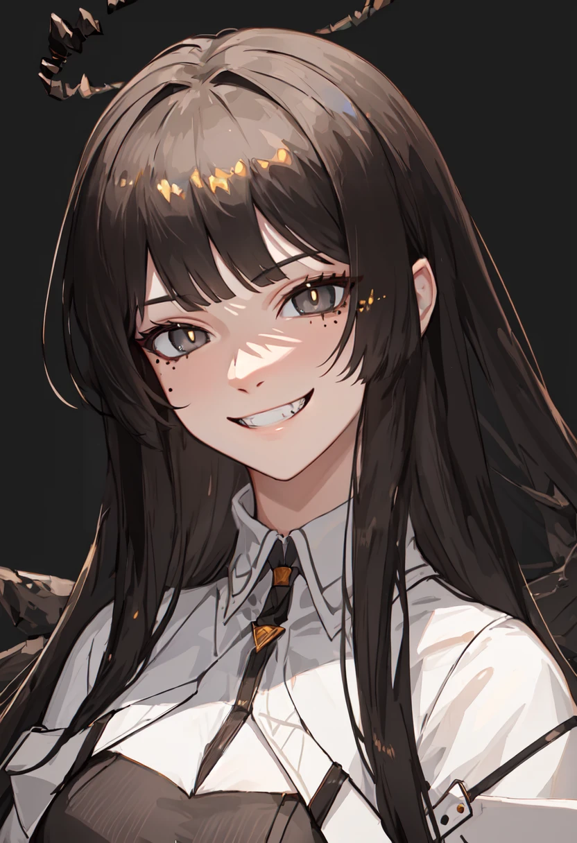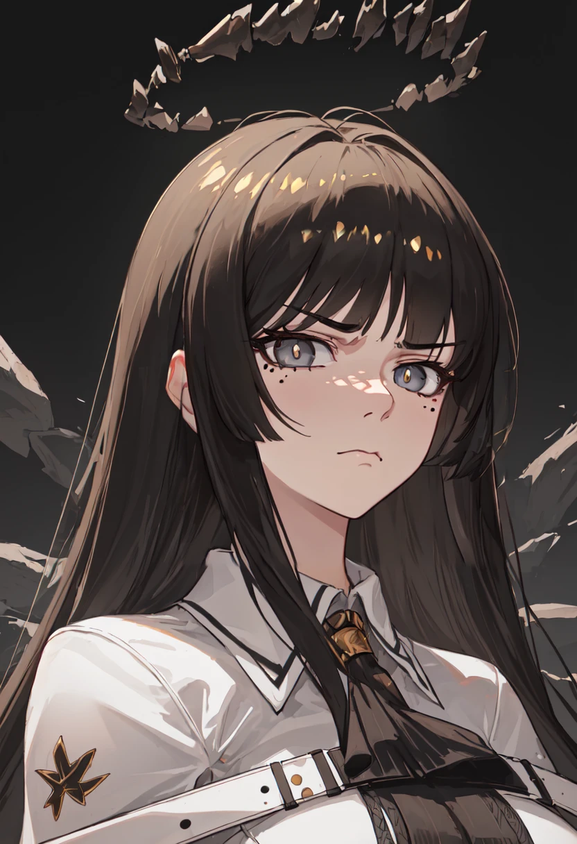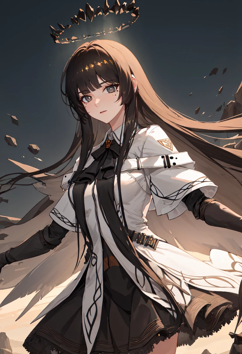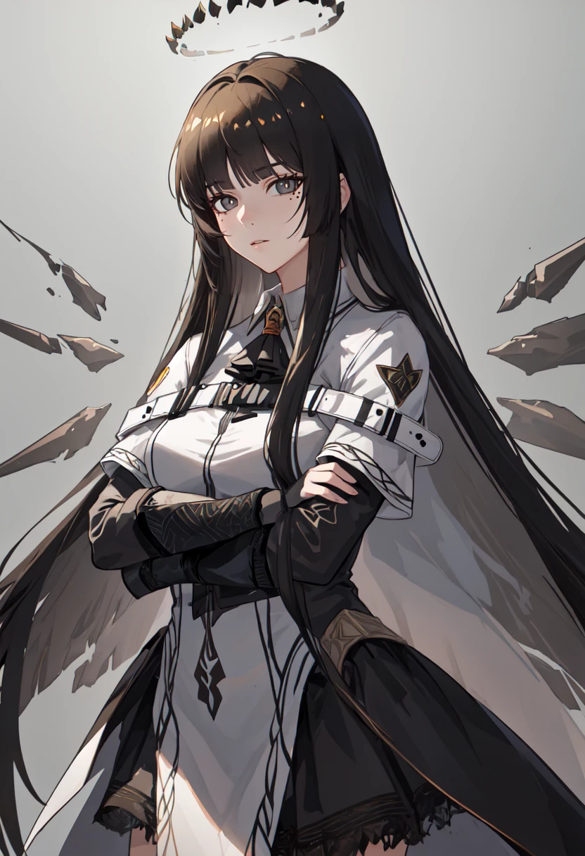 The trigger word is virtuosa_arknights, and the pruned tags are black_hair, long_hair, blunt_bangs, mole, mole_under_eye, straight_hair, halo, sidelocks, black_halo, dark_halo, broken_halo, hime_cut, very_long_hair, black_wings, wings, energy_wings, detached_wings, pale_skin, black_eyes, ???????, colored_inner_hair, two-tone_hair, multicolored_hair, eyelashes, white_pupils, bright_pupils, grey_hair, ??????????????, floating_hair, ahoge.
