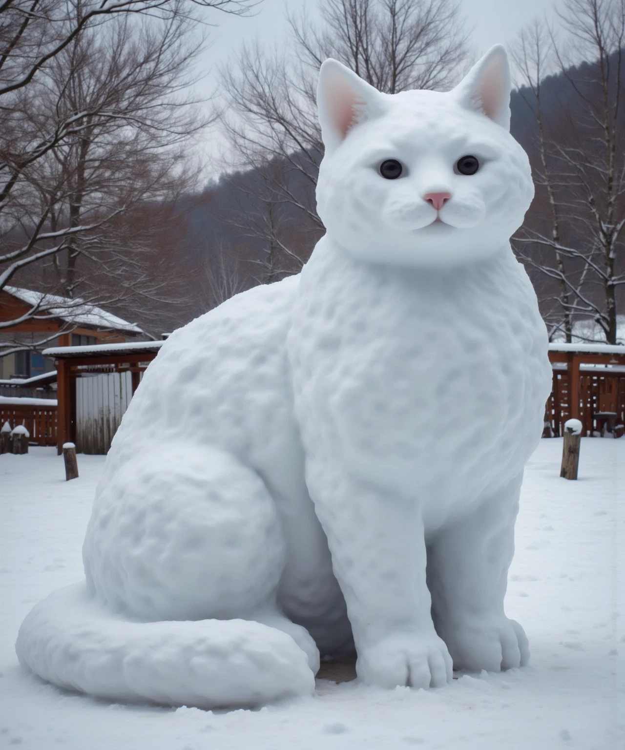 Verwandle alles in eine Schneeskulptur mit allem, was du willst. Sag einfach, was du denkst
