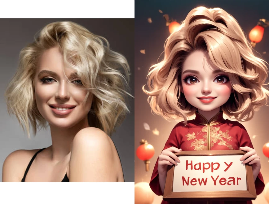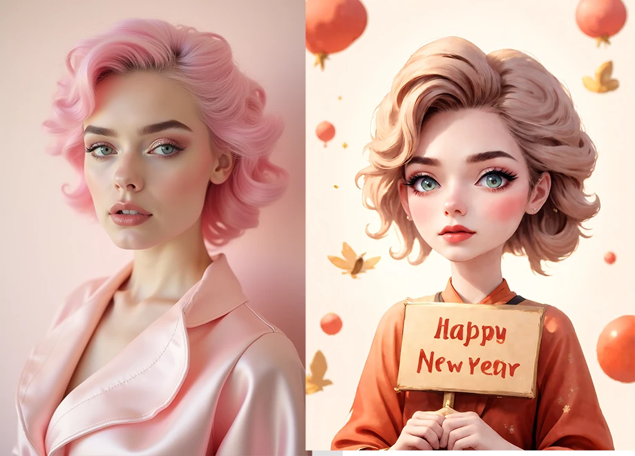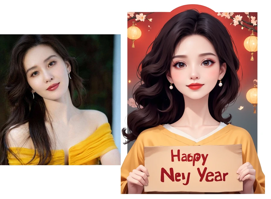 Upload your photo to generate a New Year cartoon character image. According to my testing, half-length photos work best, and there is a small chance of font errors, so I set up to save two pictures to reduce the probability of errors.Neujahrs-Stil, the prompt word can keep default.