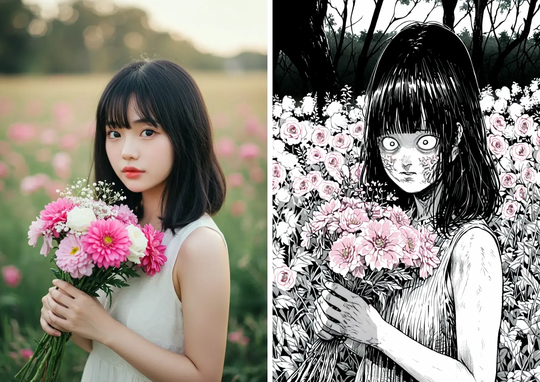 Zu Urasawa Naoki im schwarz-weißen Manga-Stil umrüsten.