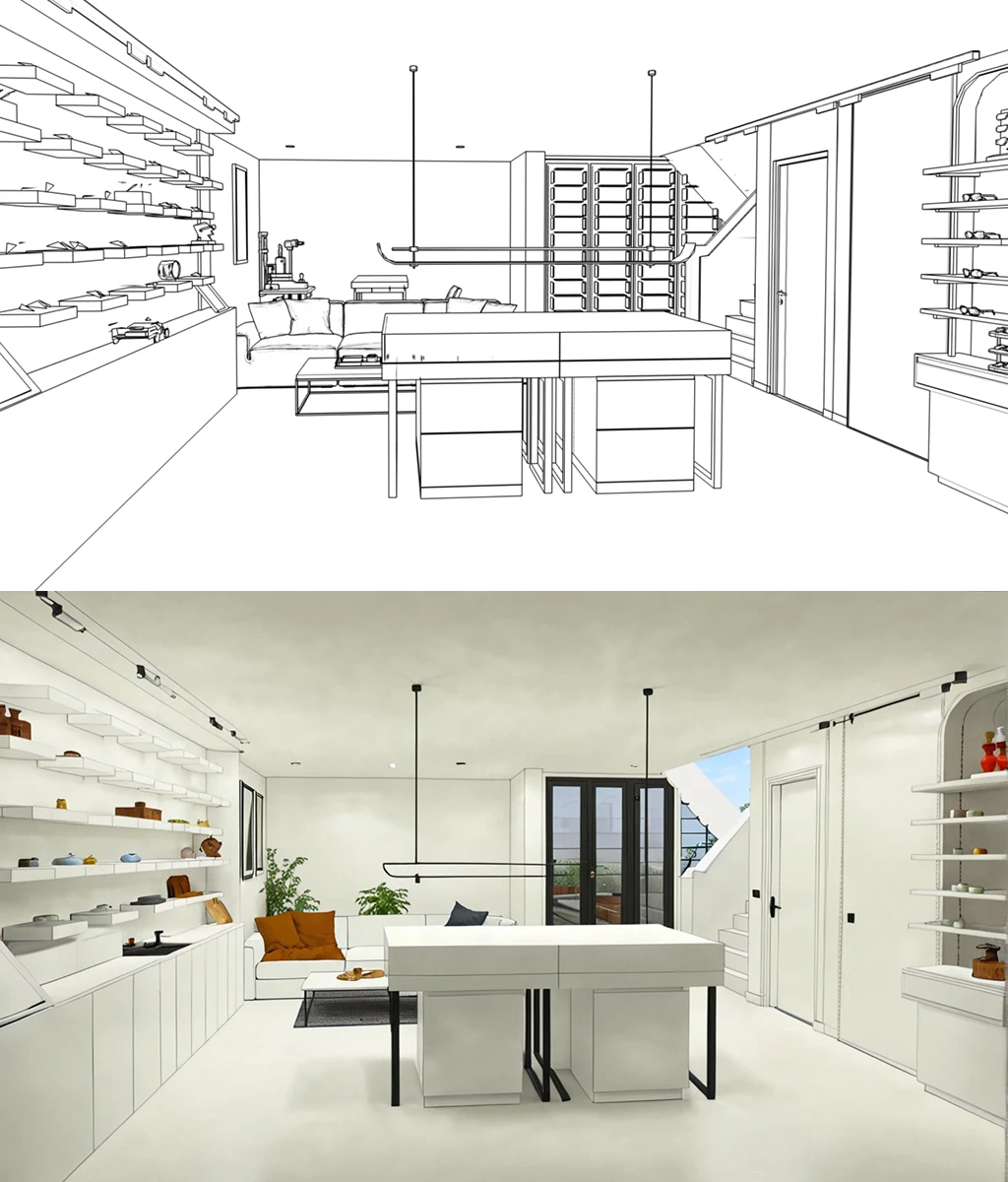 geeignet für die Kategorie Architektur ,Kategorie Innenarchitektur ,Renderings bei der Konvertierung von Linienentwürfen。 Laden Sie einfach ein Bild hoch , Es ist nicht unbedingt eine Strichzeichnung, Jedes Bild ist in Ordnung 。