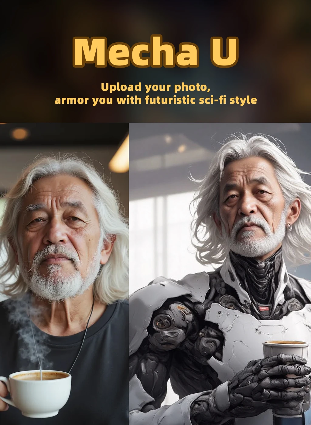 Lade ein Foto von dir hoch ,, um mit einem Klick mechanische Panzerung zu erstellen,Versuchen Sie, das vordere Foto zu verwenden. , Die Größe sollte etwa 1024 × 768 betragen
