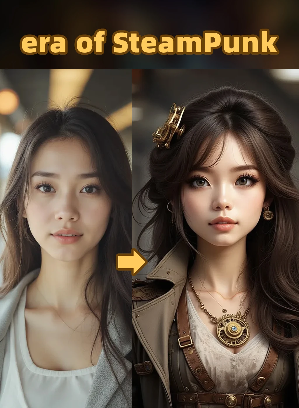 Laden Sie Ihr Bild hoch, nicht nur eine Person, auch ein Gebäude, Ein Item , machen es im Steampunk-Stil