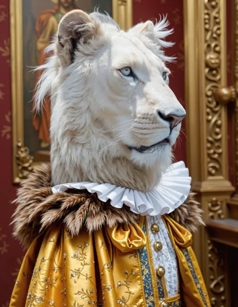 Laden Sie ein Tierfoto hoch, zu generieren und lade dann ein Referenzfoto hoch, (, ein edles Portrait oder ein anderes Kleidungsstück, ein Outfitfoto), und fange an,.