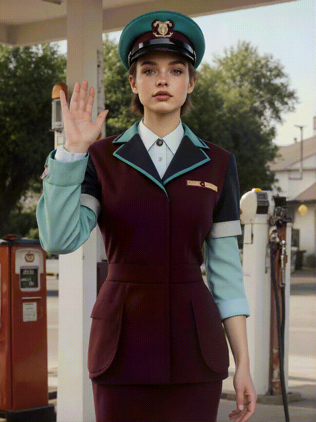 Ein Foto wird zu einem KI-Retrovideo:Video der Frau an der Tankstelle