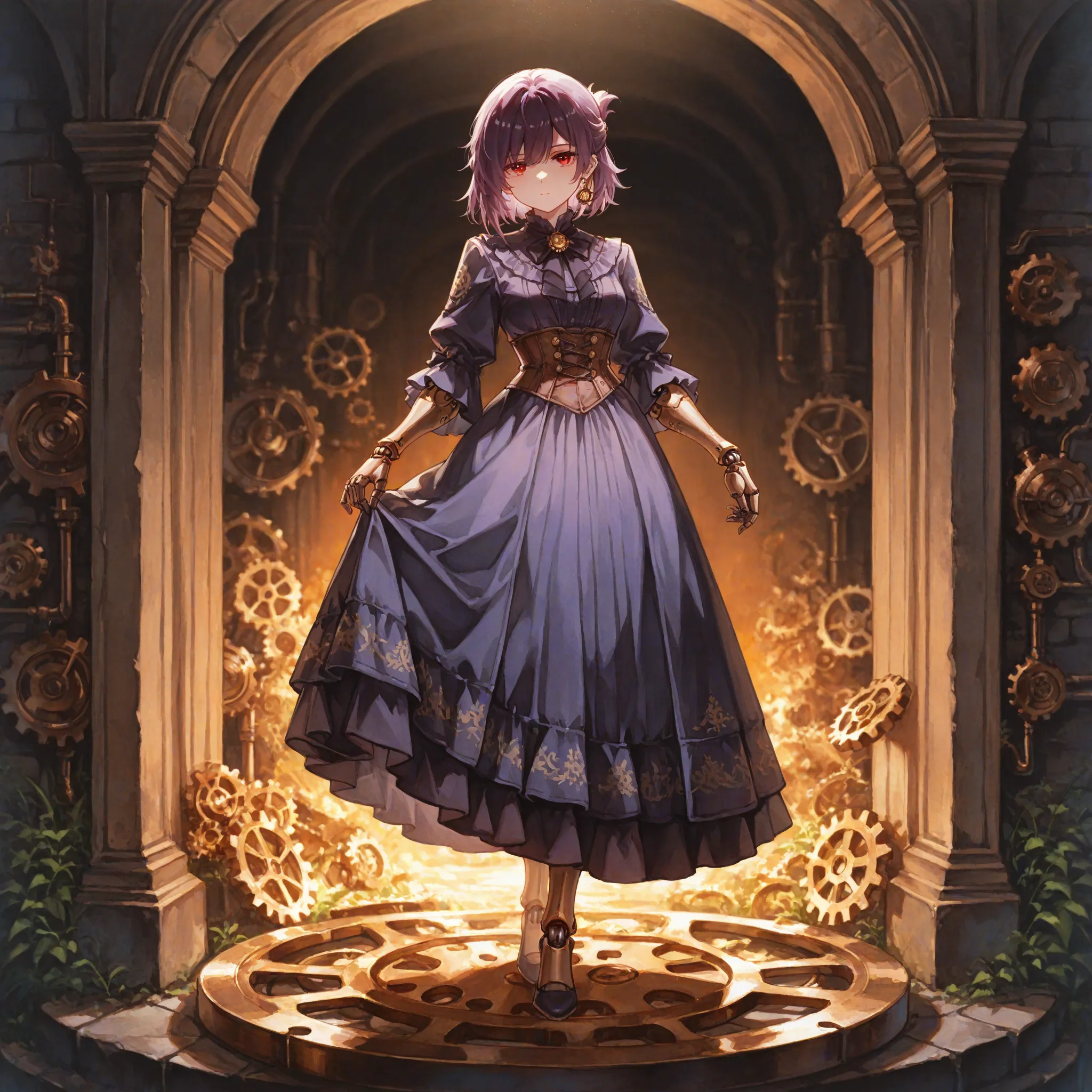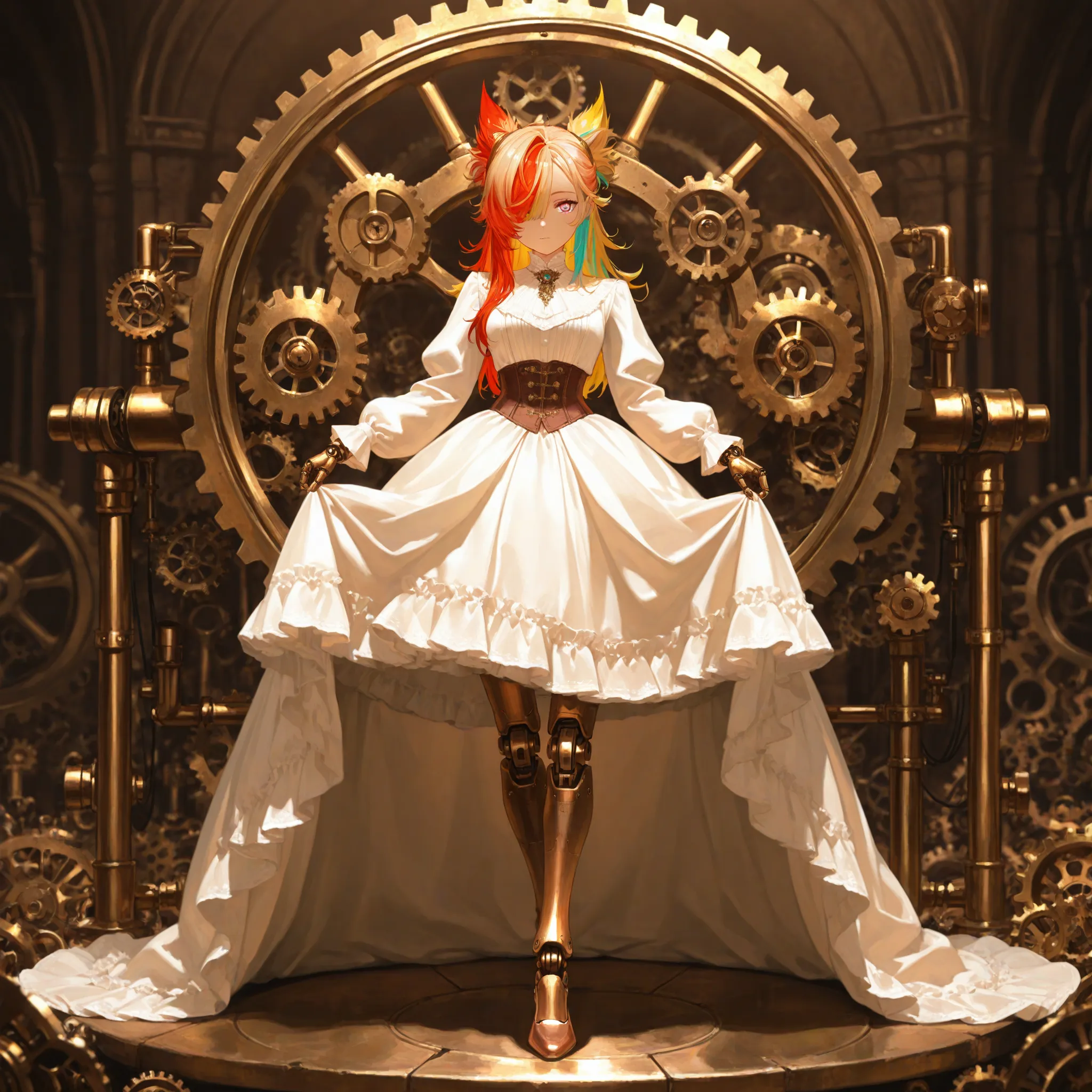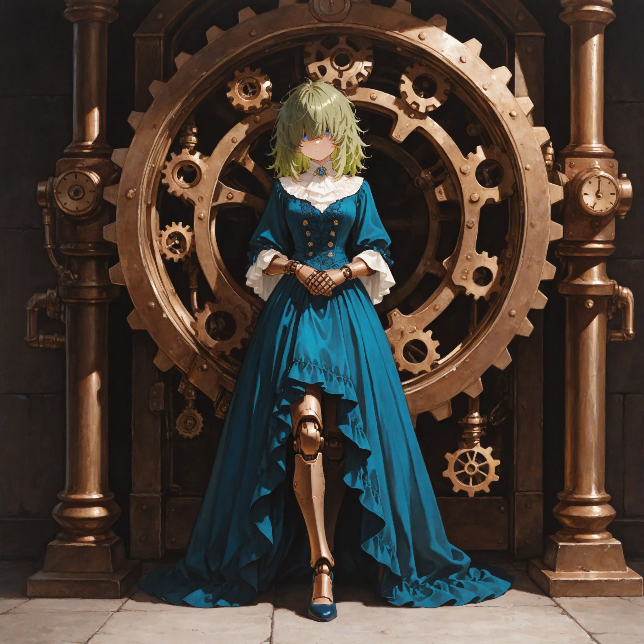 generiert Steampunk-Automaten-Mädchen mit detailliertem Hintergrund