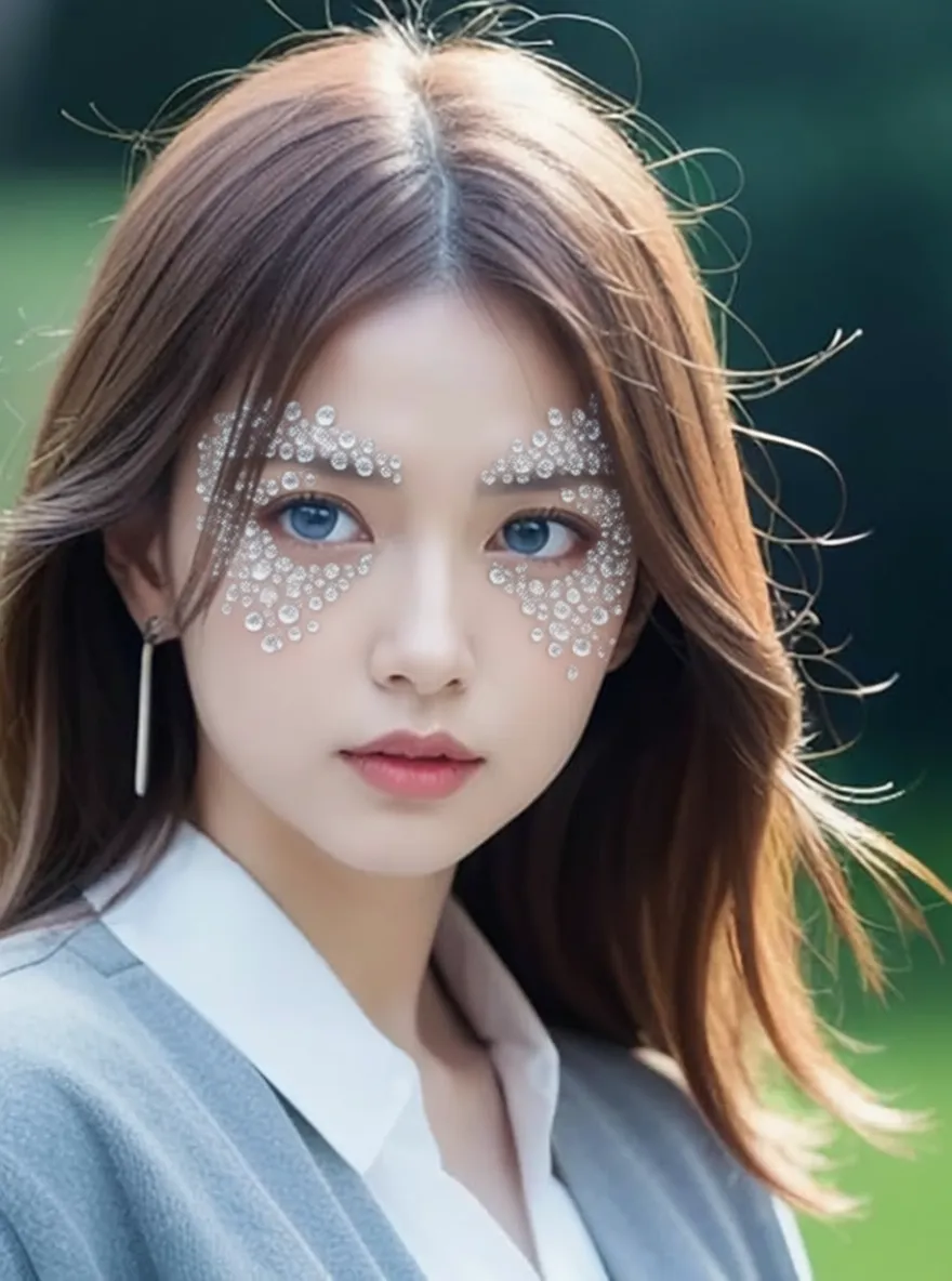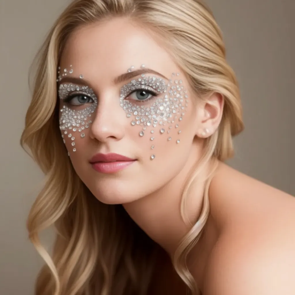 Verleihen Sie Ihren Augen und Wangenknochen mit winzigen, tauähnlichen Kristallen, die schimmern, einen Hauch von Laufstegausstrahlung. Jeder Glanz fängt das Licht natürlich ein, die Schaffung einer hochmodischen, fotorealistische Ausstrahlung, die leuchtend wirkt, Elegant, und mühelos fesselnd.