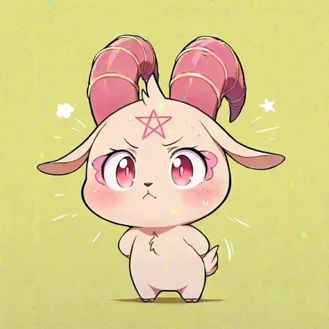 GrimVU, chibi, small, curved horn, pentagram on forehead, large pupil,
