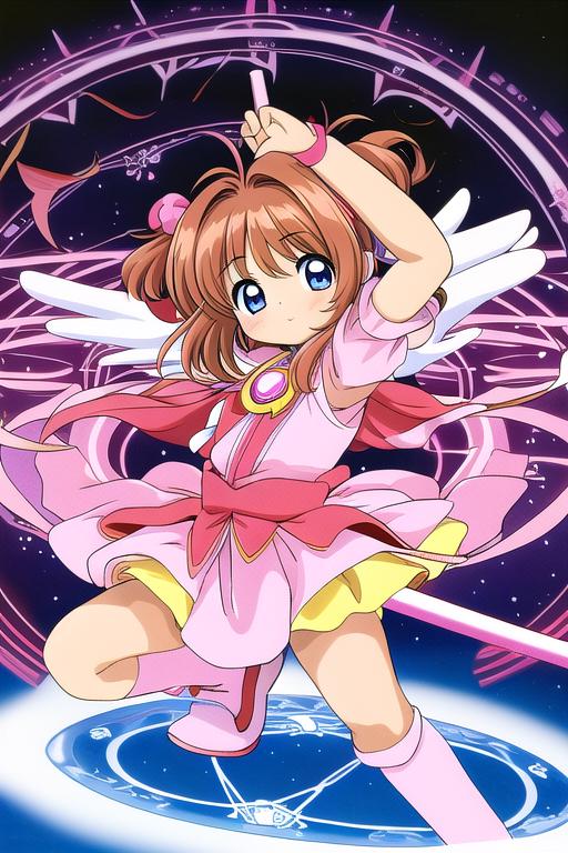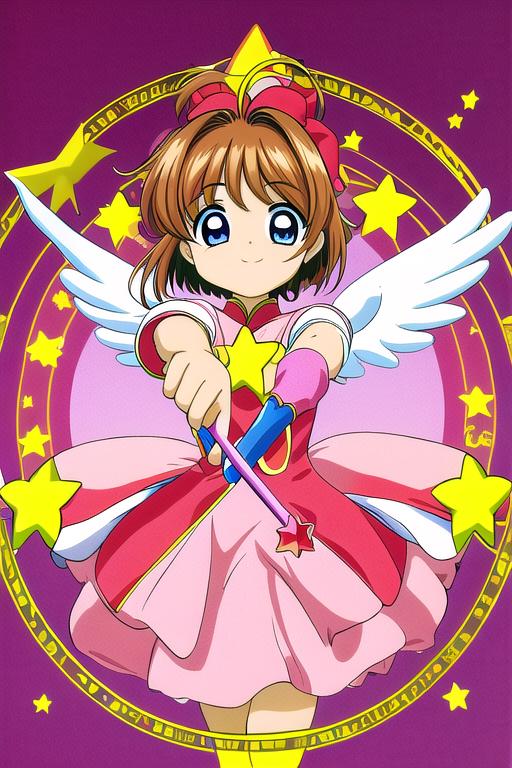这个模型拥有很好的画风模仿效果,训练图片全部来《魔卡少女樱》的动画版原画集。