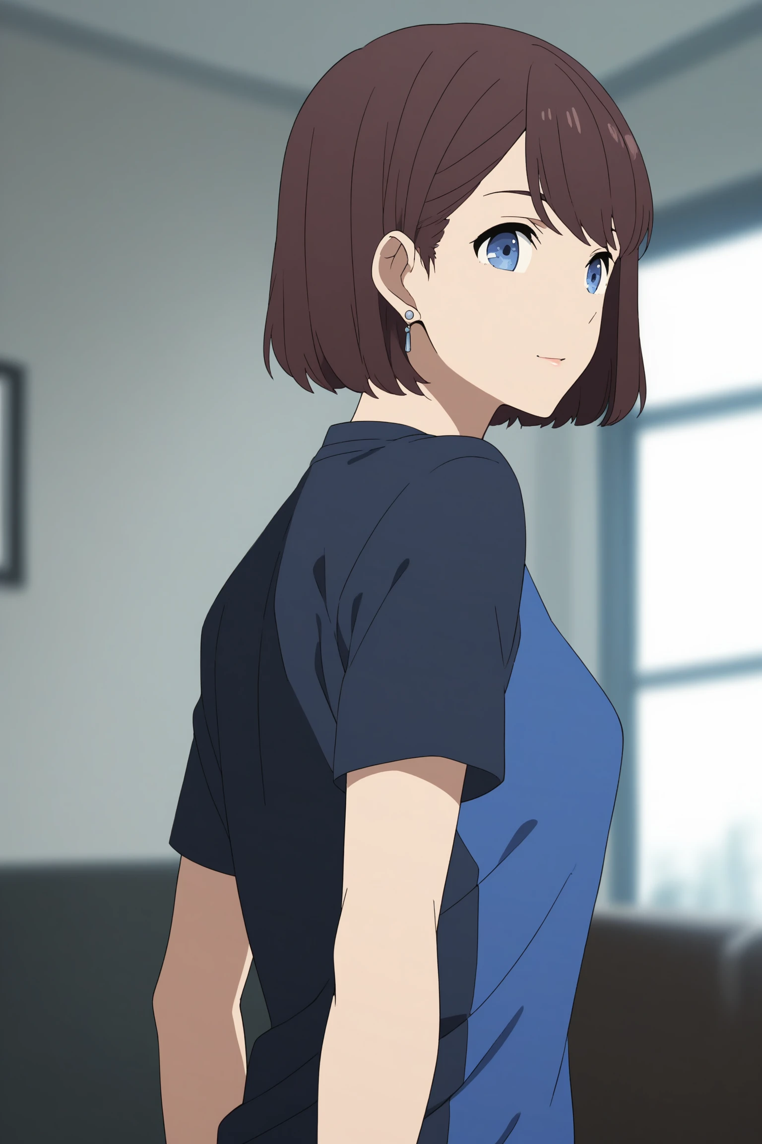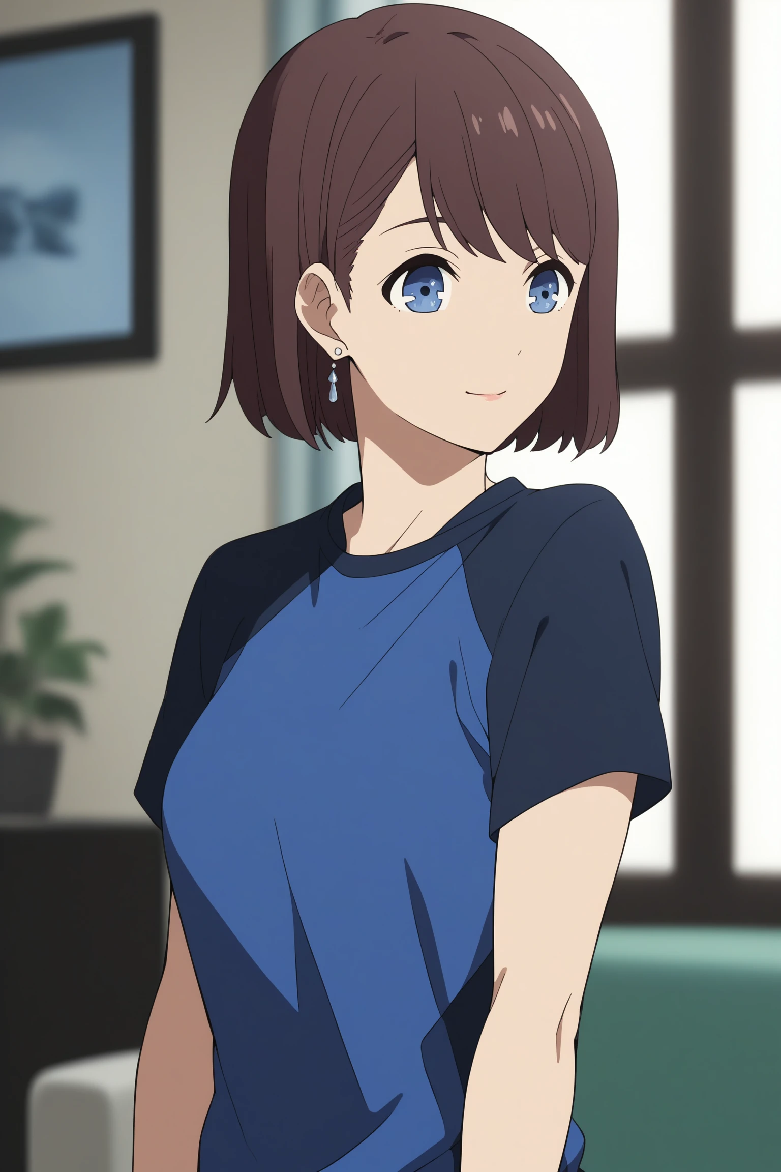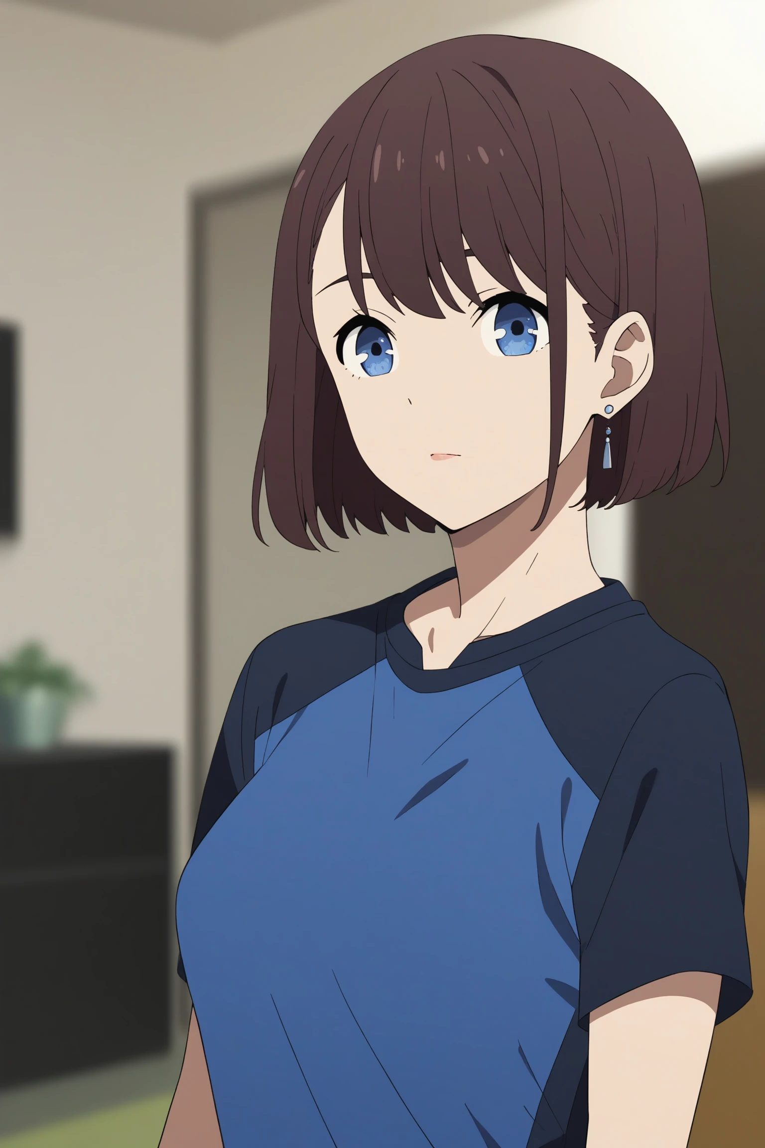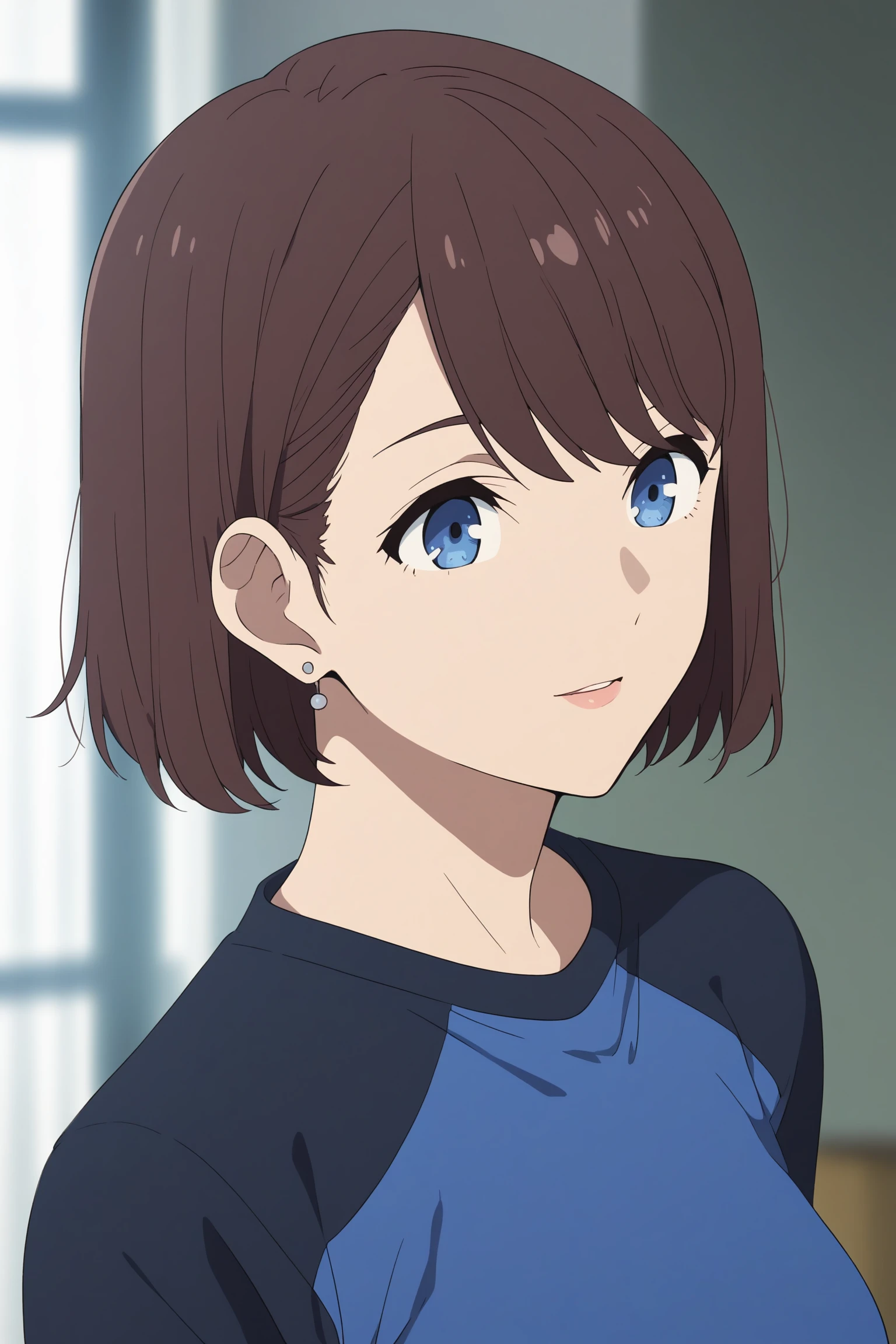 ninomiya mai, brown hair, short hair, blue eyes, earrings