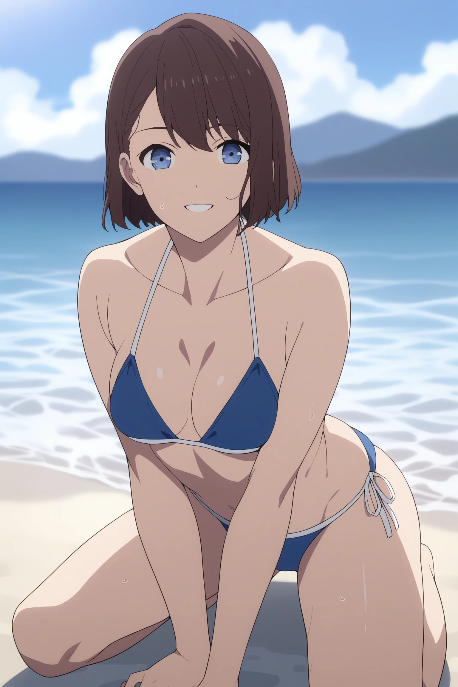 ninomiya mai, brown hair, short hair, blue eyes, swimsuit, ??????, blue bikini,