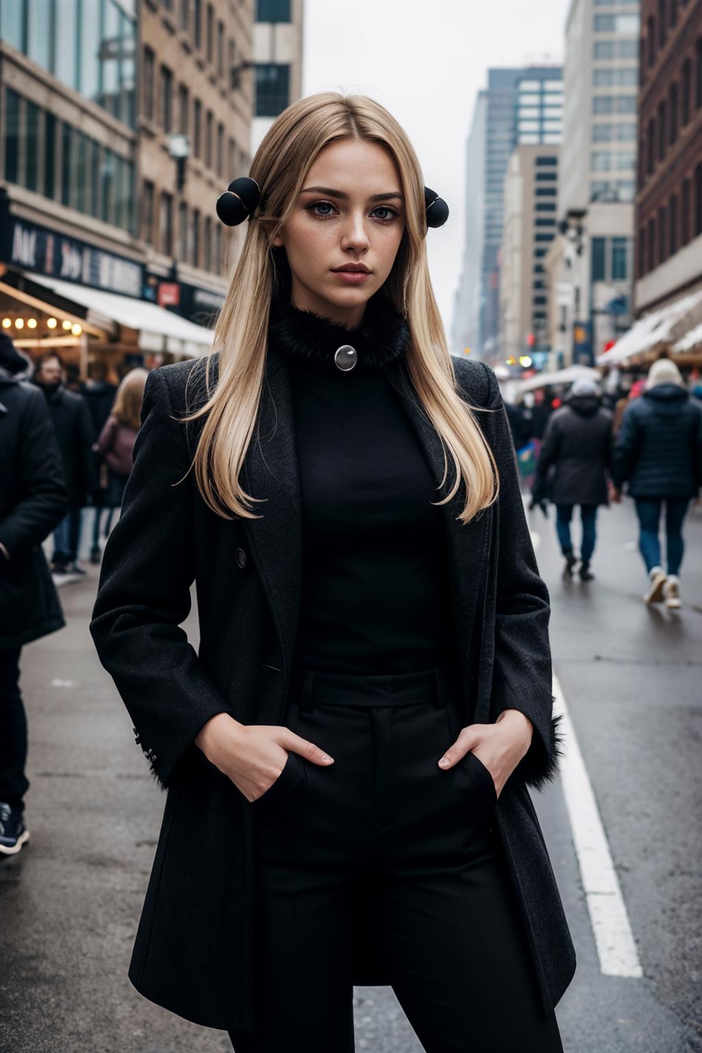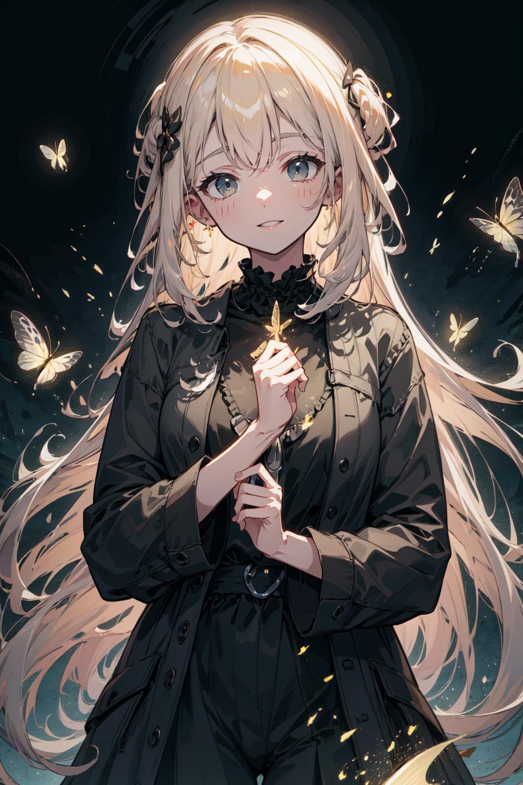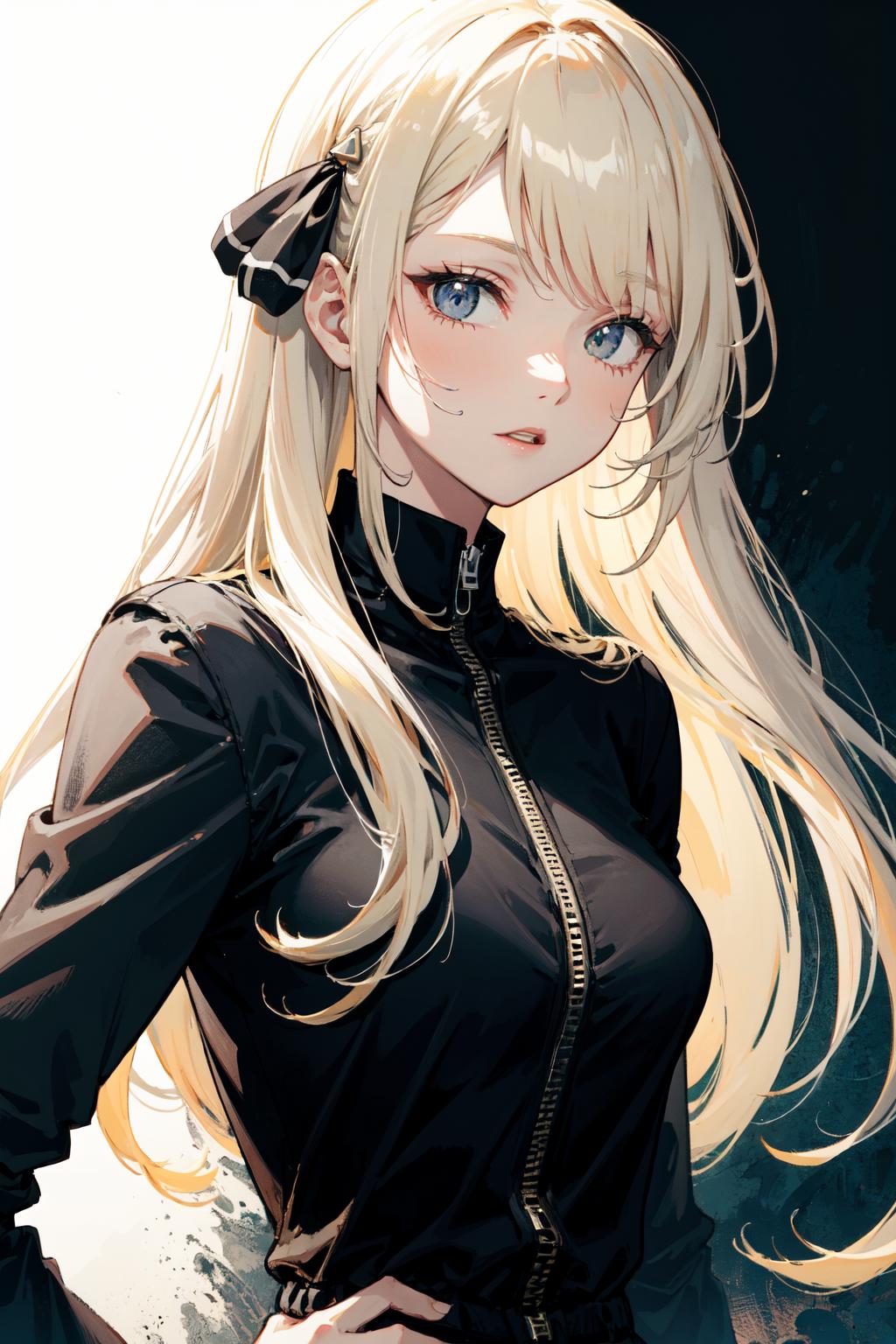 blonde hair,grey eyes, hair over one eyes,long hair,hair ornament