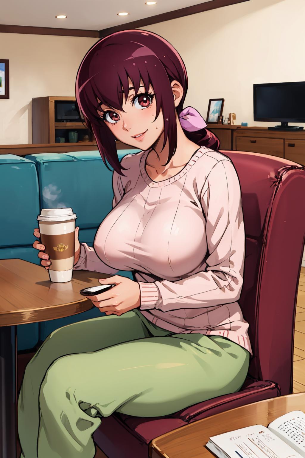 Add "hair bow, white shirt, blue skirt, blue pants" for her typical look.