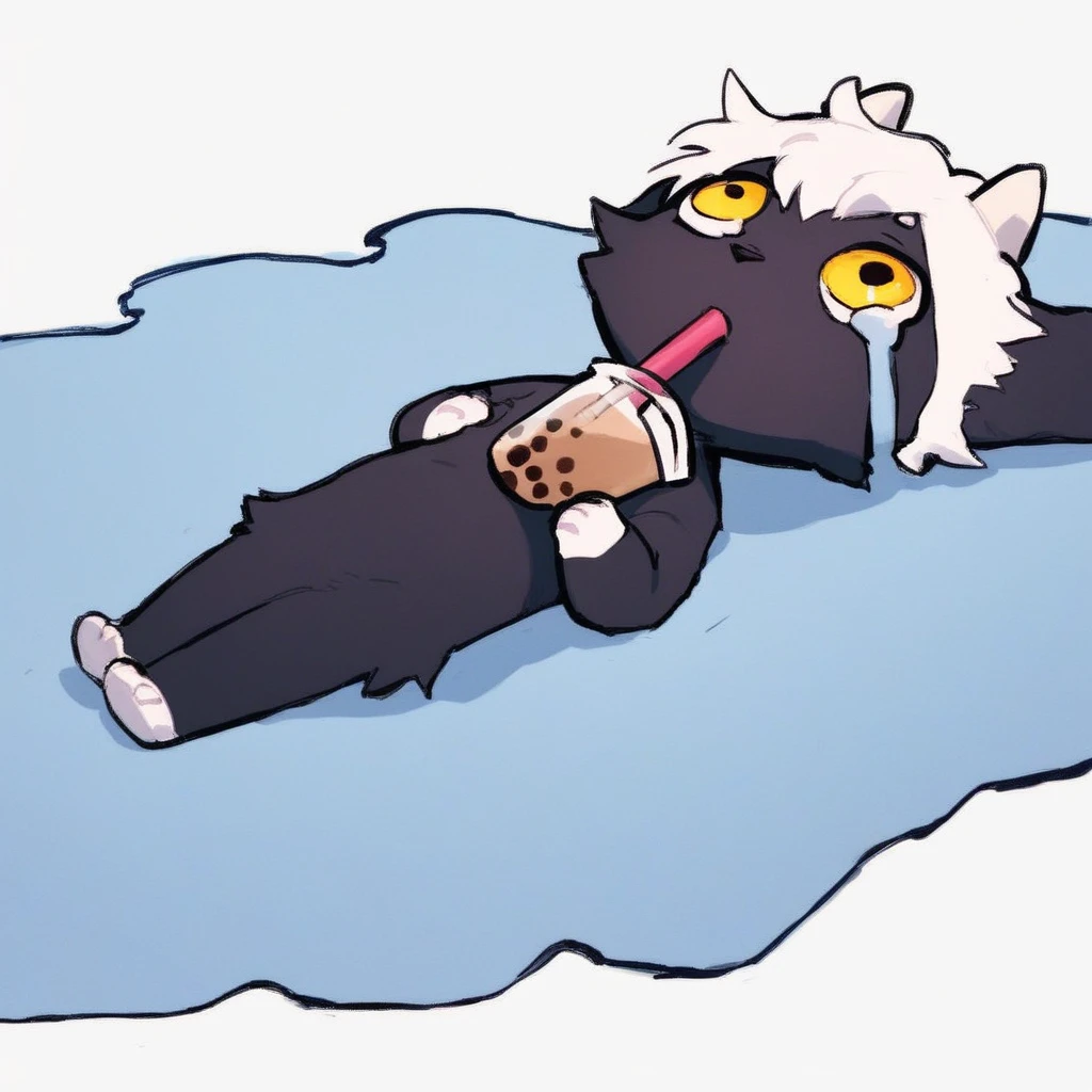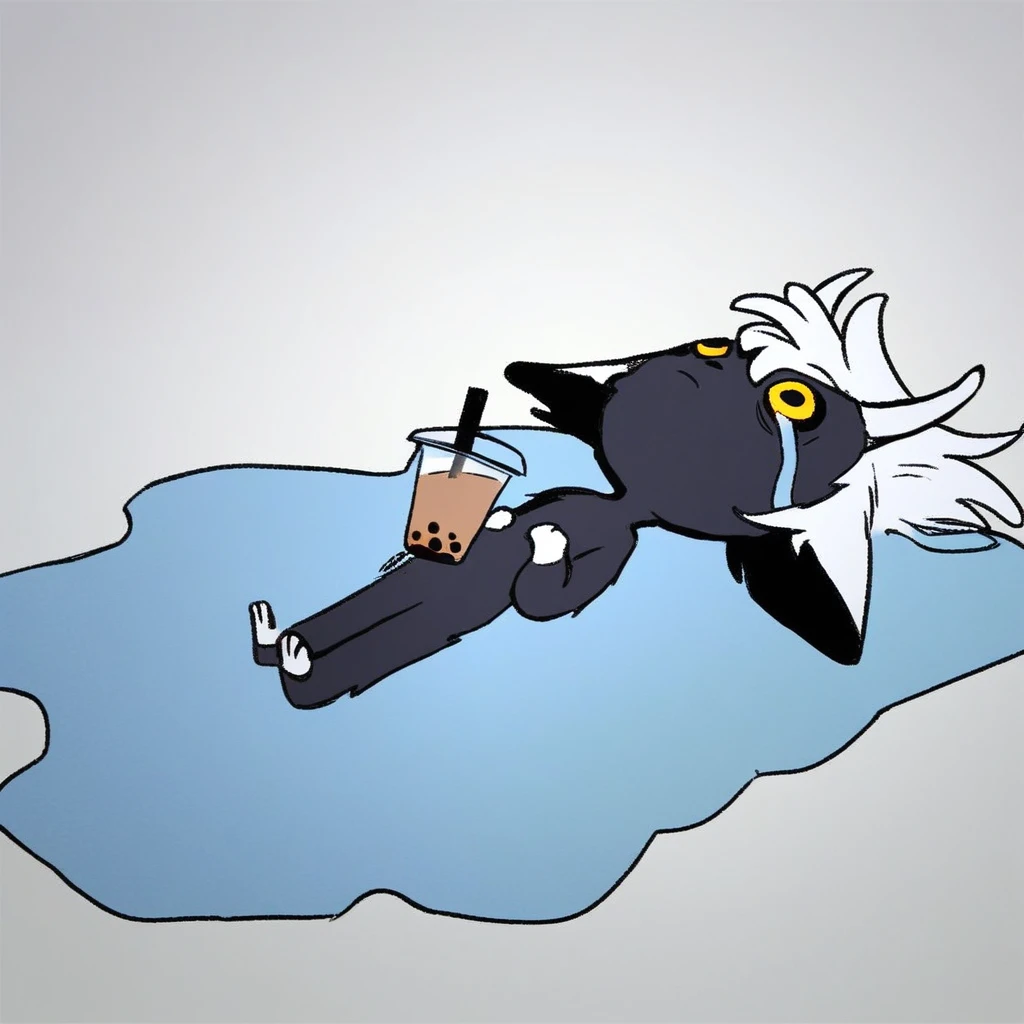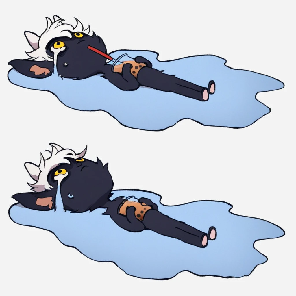 mikus-concept, lying down, puddle of tears, white background, blue puddle