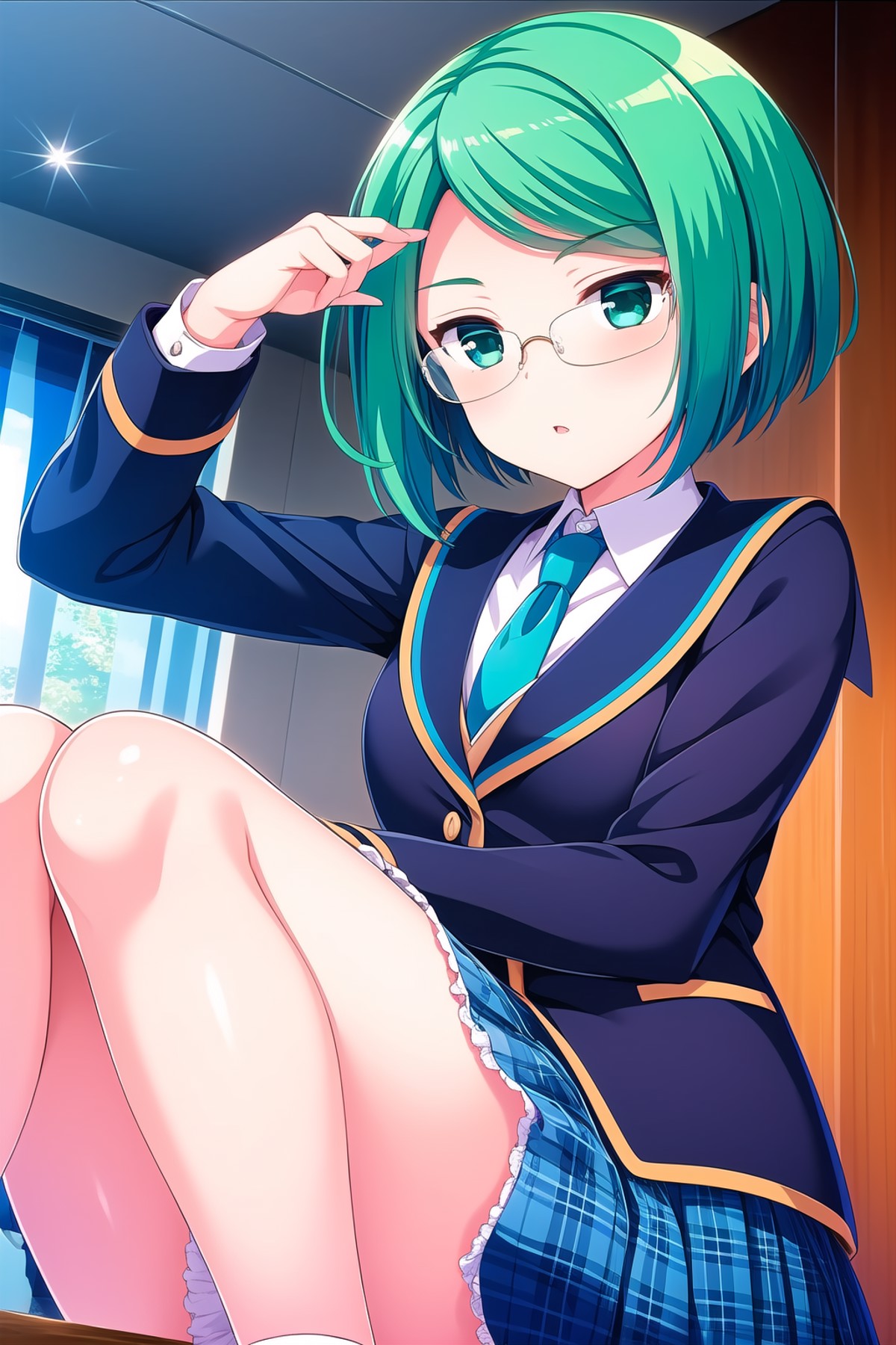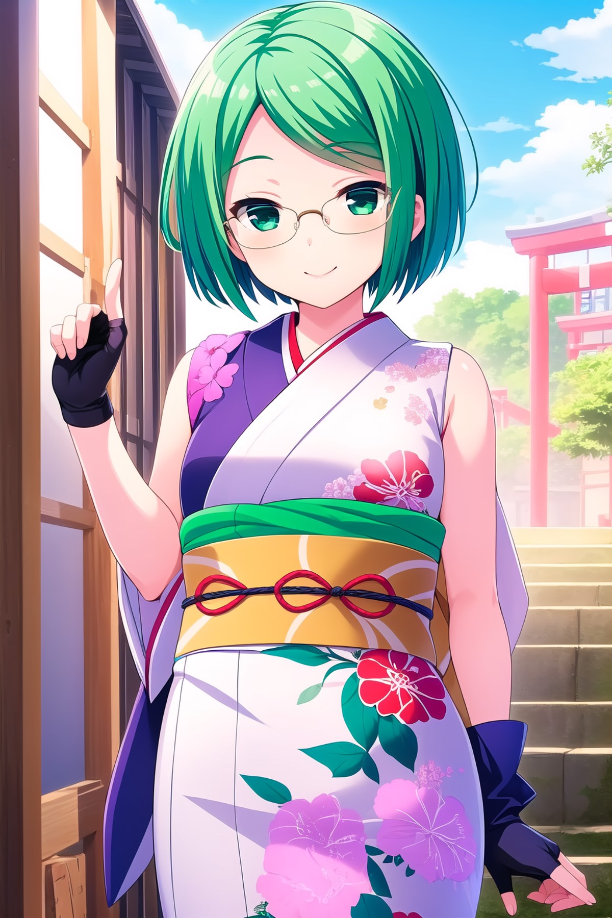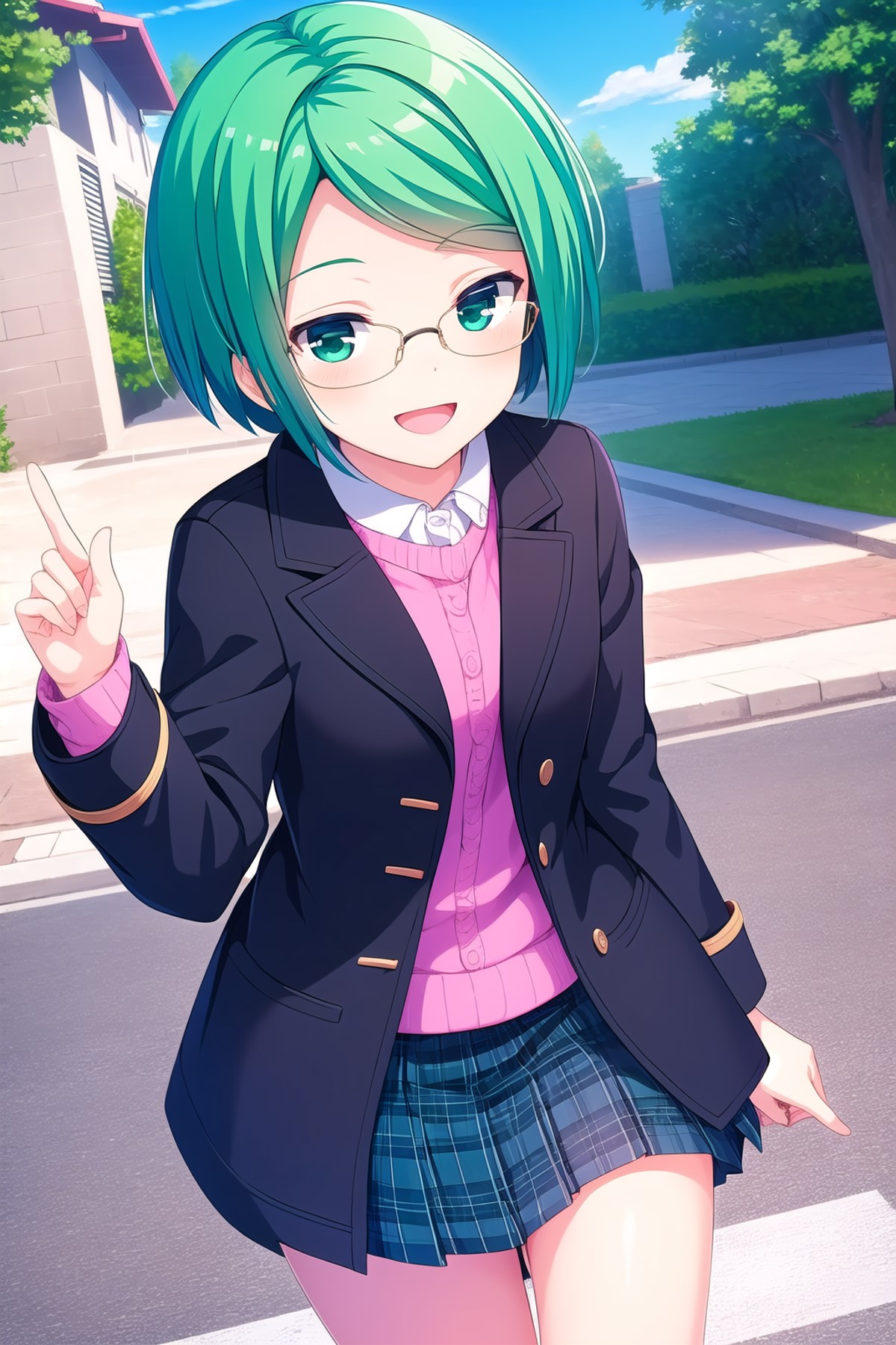 touyamamisuzu, green, hair short hair, glasses, green eyes