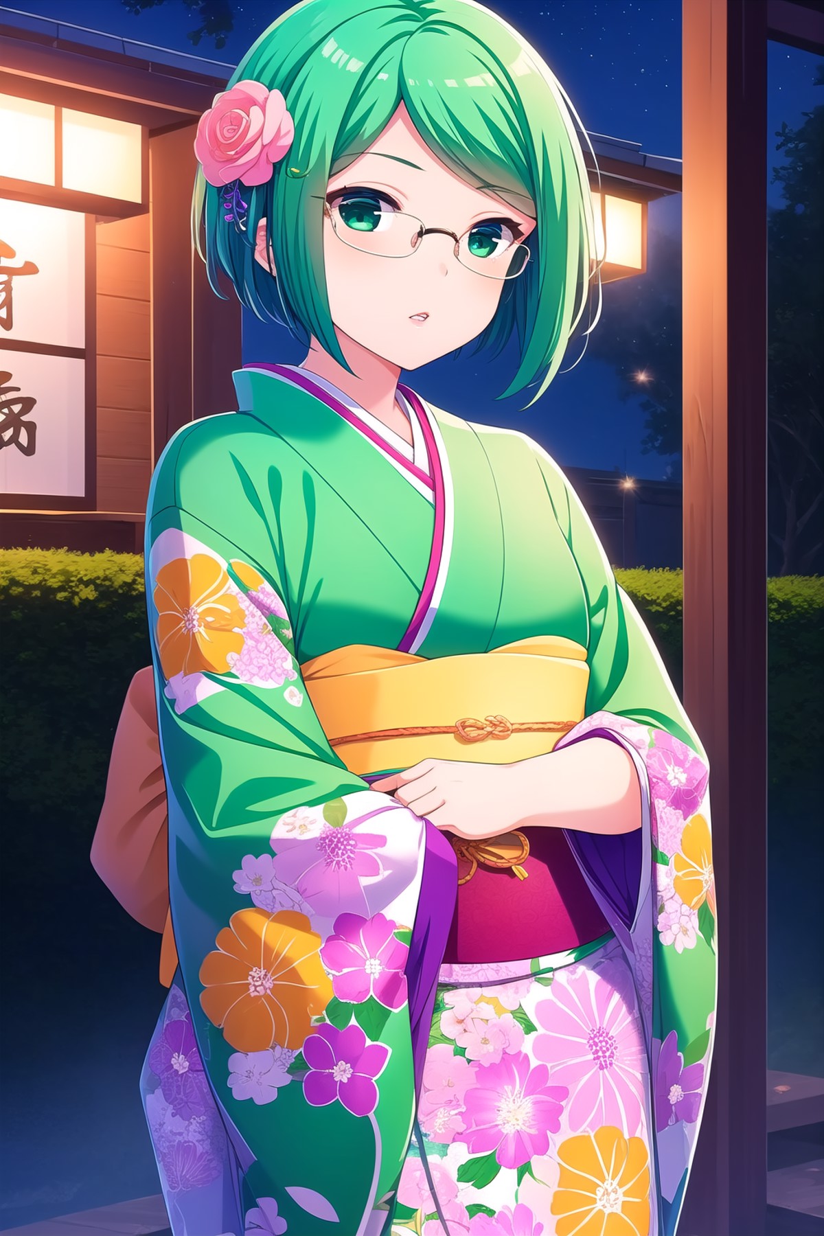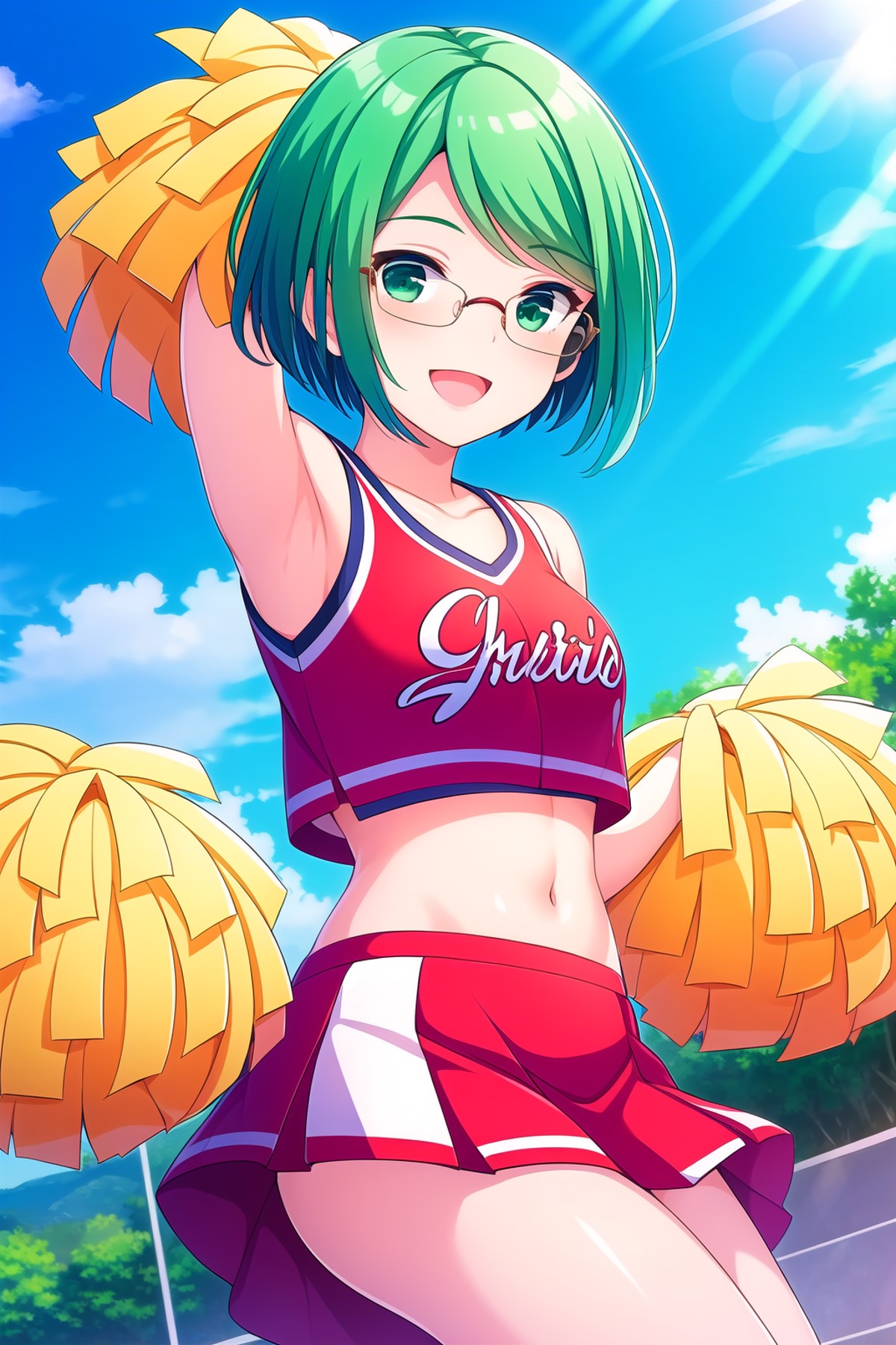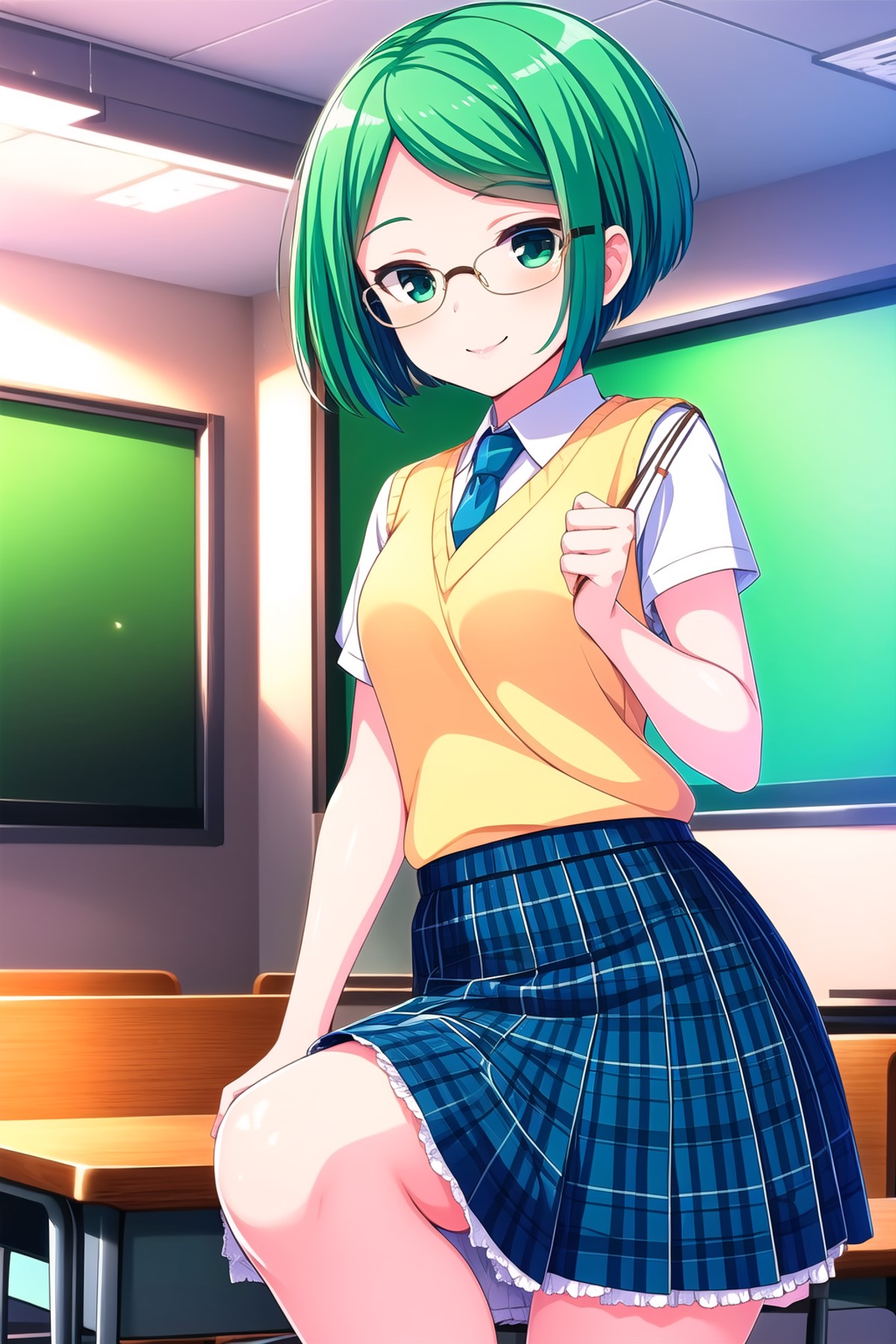 touyamamisuzu, green, hair short hair, glasses, green eyes