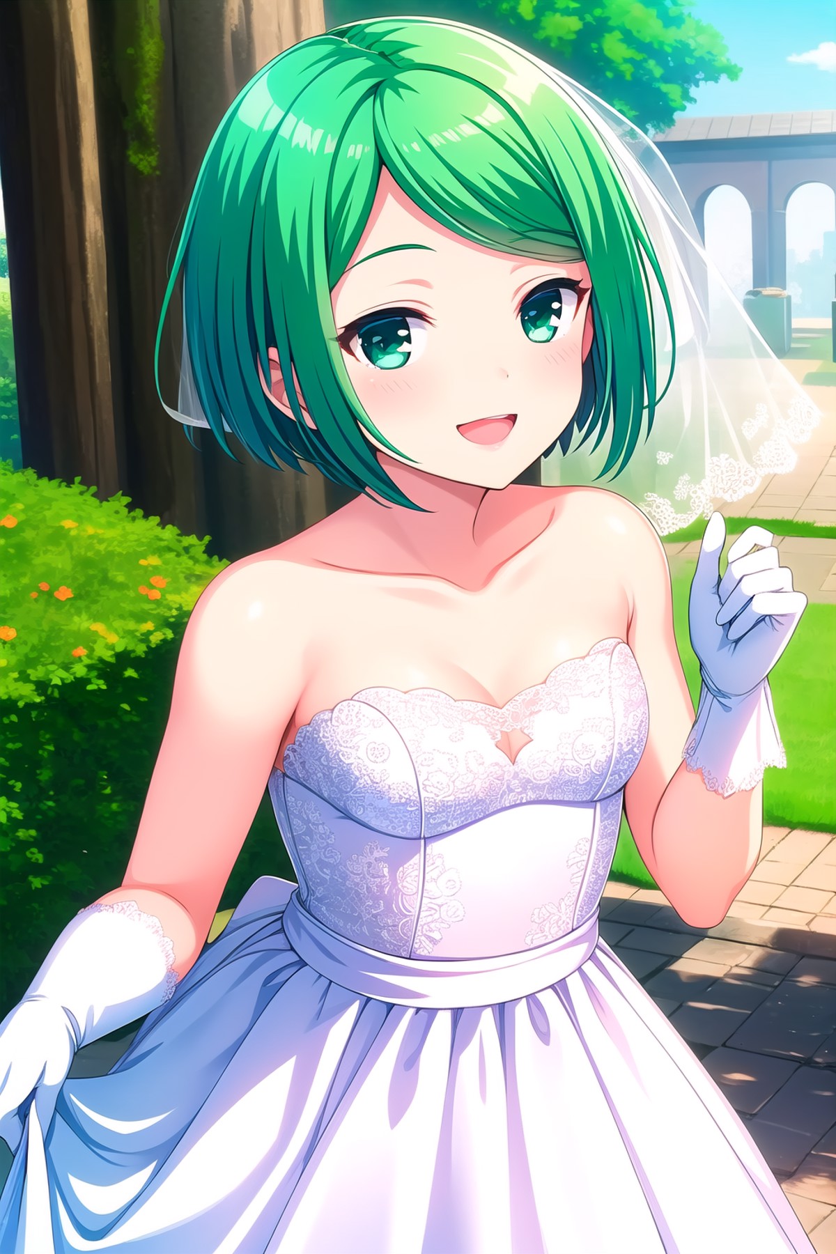 TOUYAMAMISUZU GREEN HAIR SHORT HAIR, GREEN EYES,