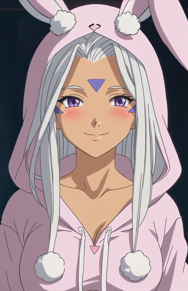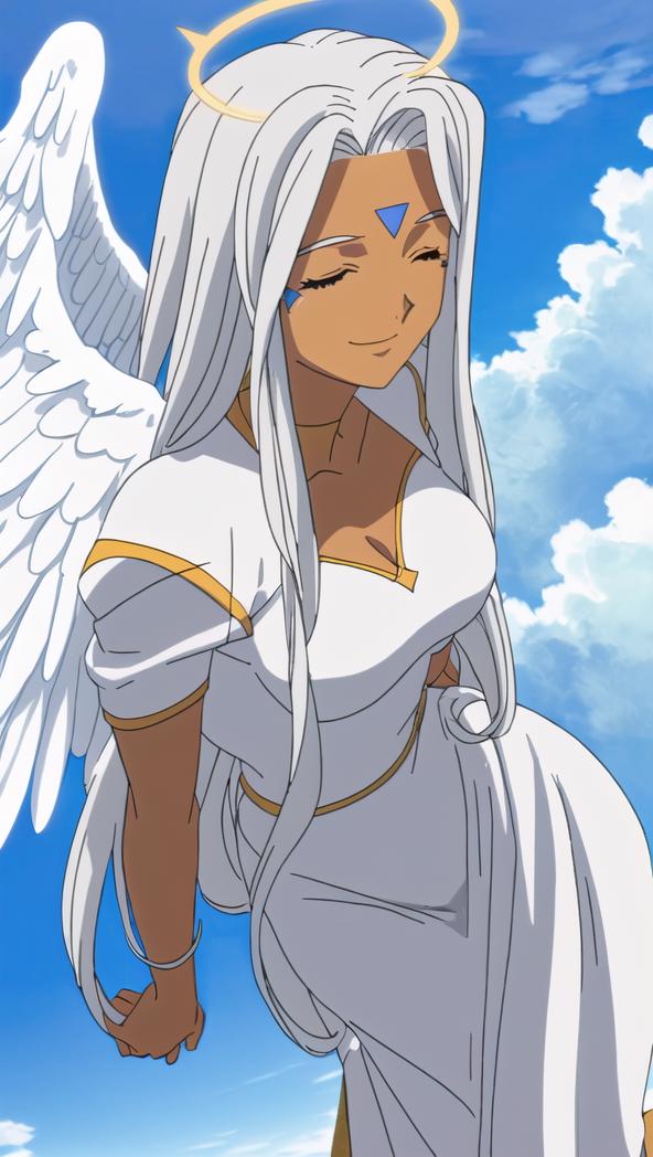 If you want Evil Urd with her red face markings, recommended to put (red forehead markings) in your prompt, mostly works. For blue, put well...(blue forehead markings).