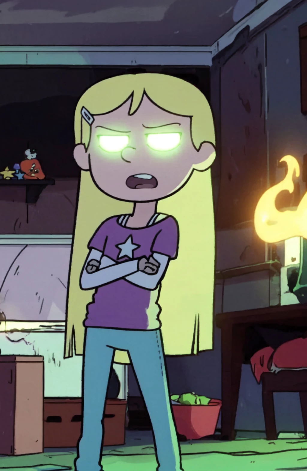 Kelly Marra, long hair, blonde hair, shirt, black eyes, hair ornament, long sleeves, hairclip, pants, off shoulder, star (symbol), hand on hip, t-shirt, star printbonus outfit