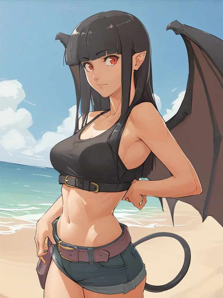 Use trigger "mgqeva" and then prompt as normal using "demon tail" and "demon wings" if you want those to appear.